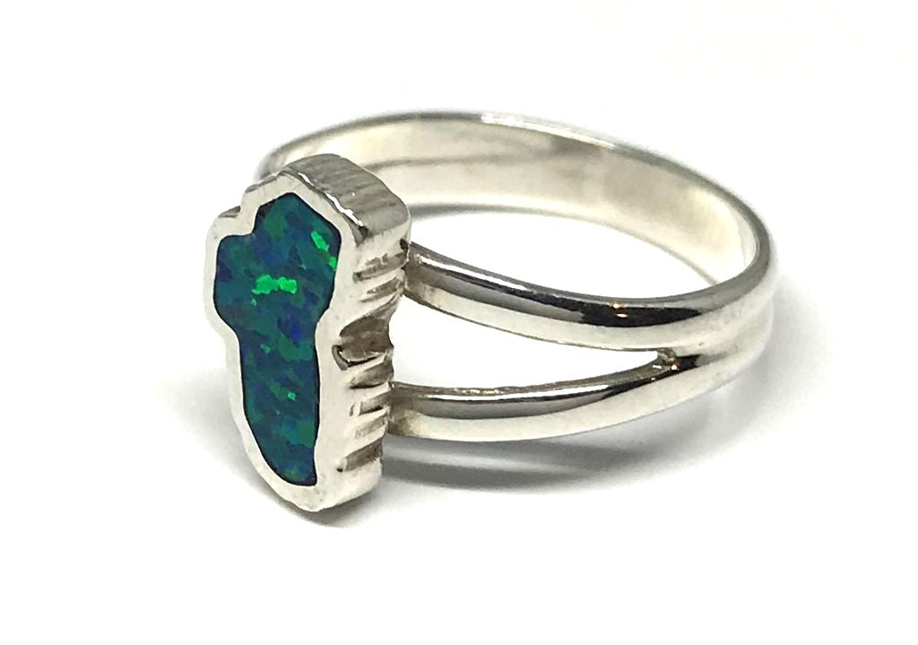 Small Silver Lake Tahoe Ring with Lab Opal- NEW 2022 DESIGN- Size 8