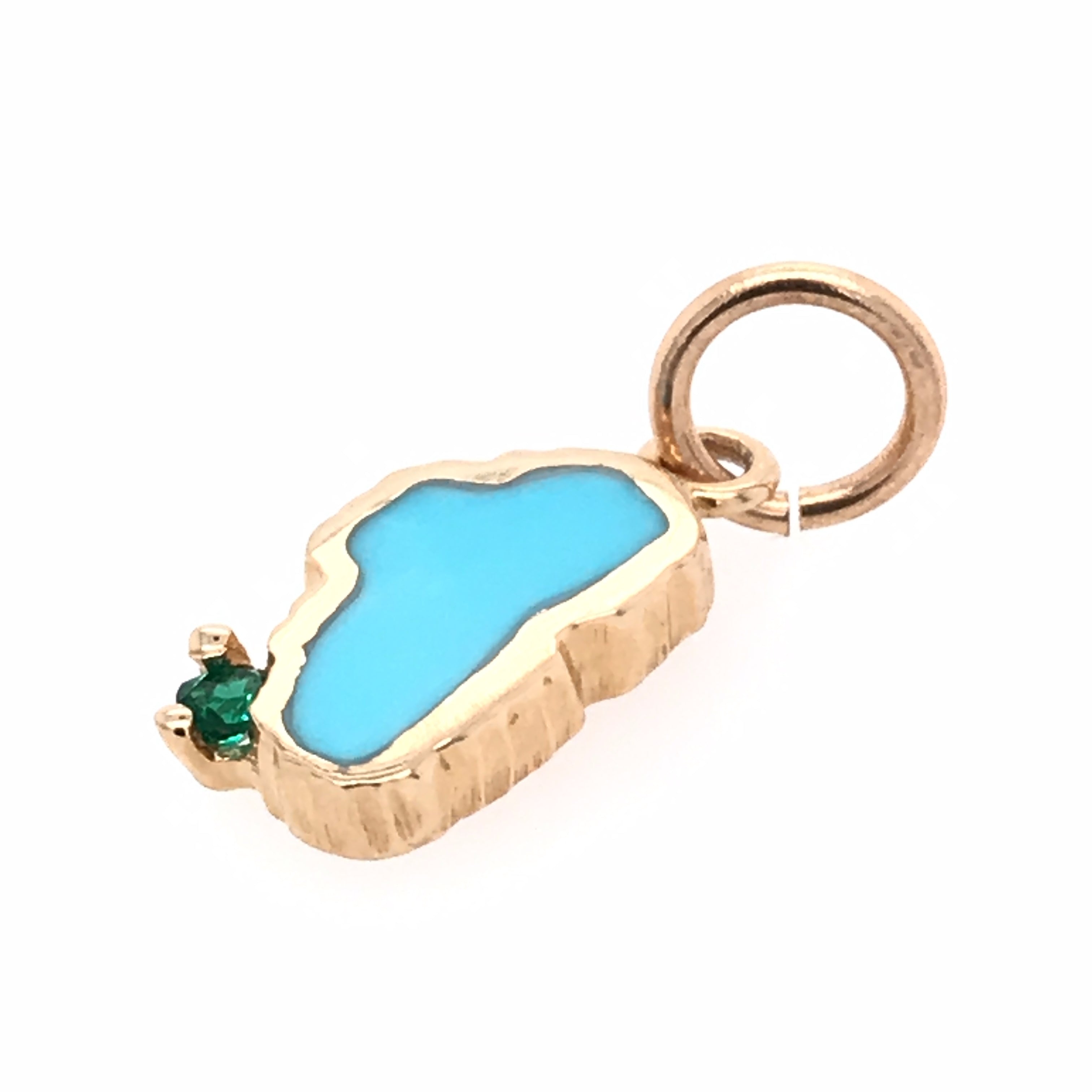 Small Yellow Gold Turquoise Lake Tahoe Charm with Emerald