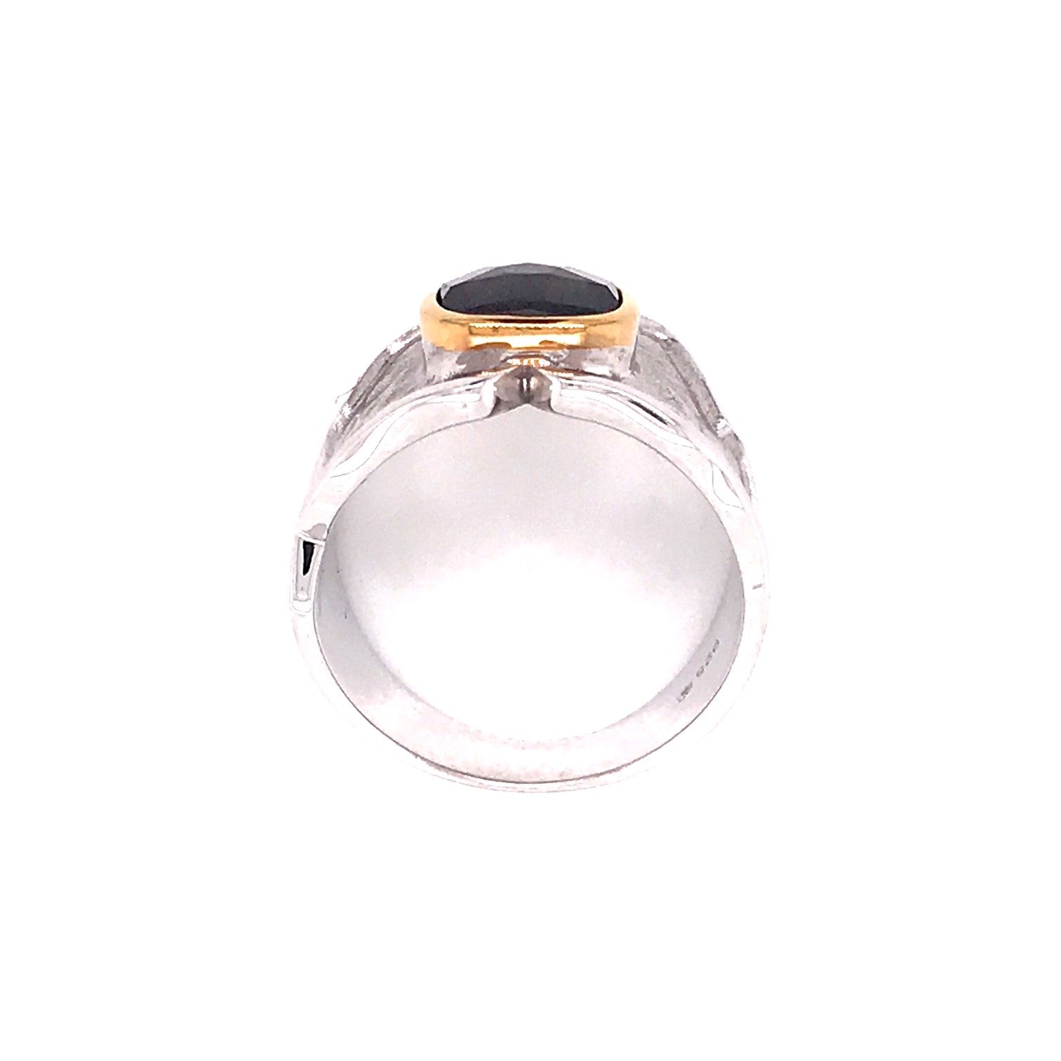 Sterling Silver with Rhodium Plating & 14 Karat Yellow Gold Vermeil Ring with One Square AmmoliteRing Size 7.Sterling Silver with Rhodium Plating & 14 Karat Yellow Gold Vermeil Ring with One Square AmmoliteRing Size 7.***50% OFF SALE***