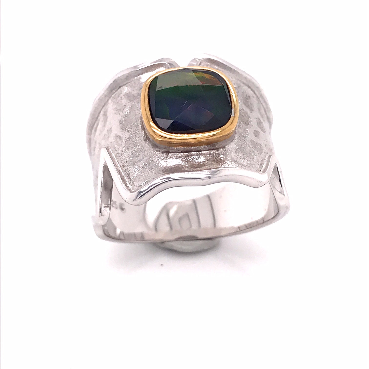 Sterling Siilver Ammolite & 14k Yellow Gold Vermeil Ring