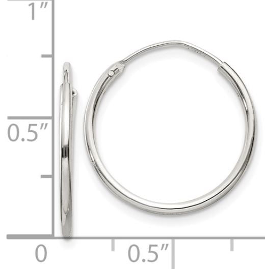 Sterling Silver 1.3mm Endless Hoop Earrings 19mm tall/wide