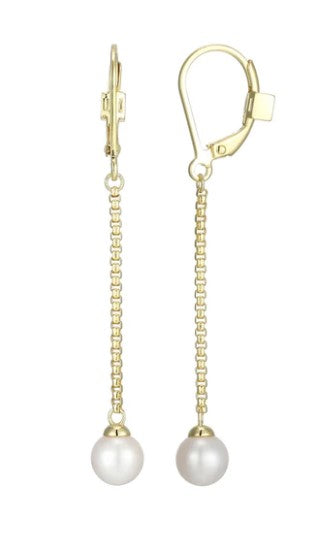 Sterling Silver & 14KY Gold Plated Pearl Drop Earrings