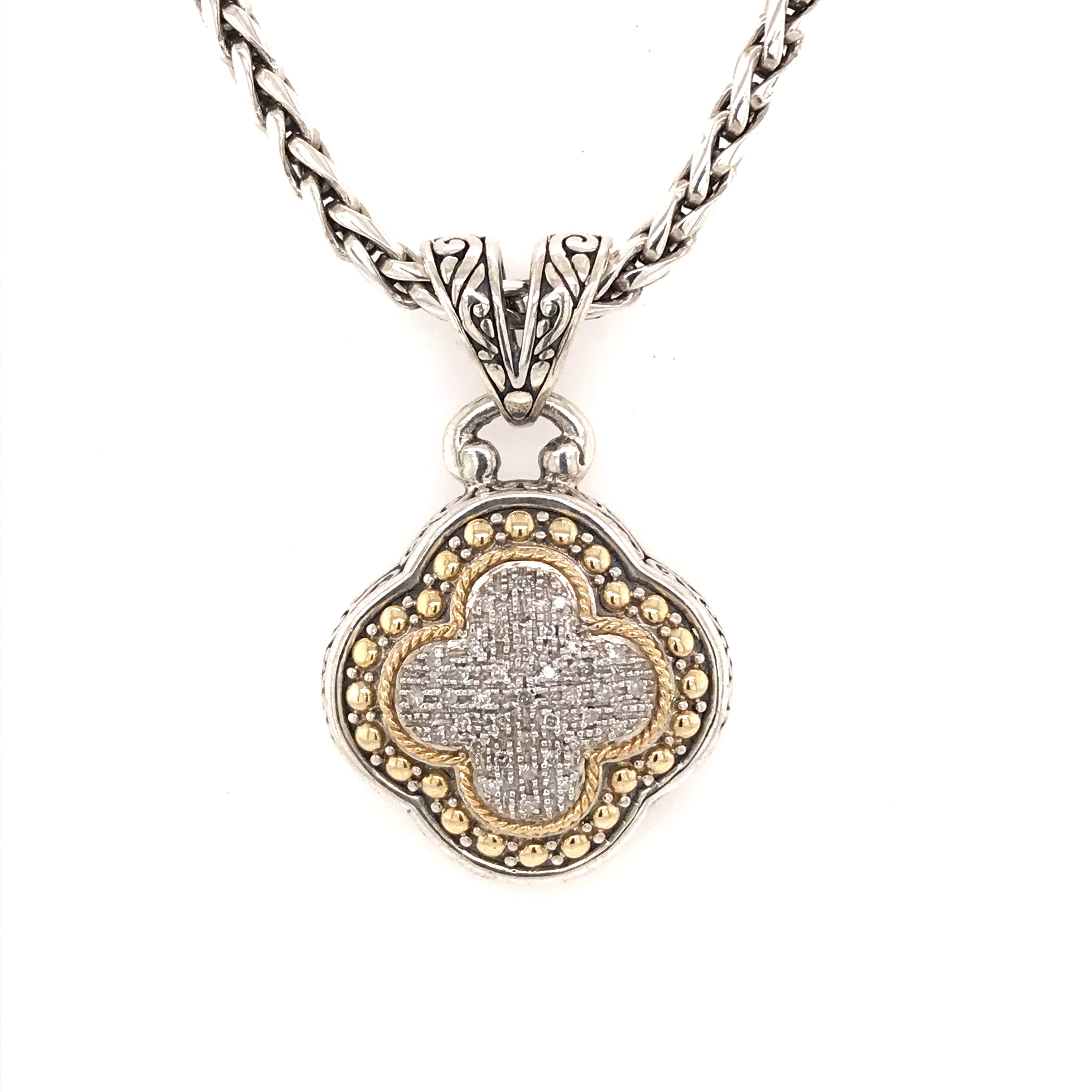 Sterling Silver & 18K Gold Diamond Pendant - 20" Petite Weight