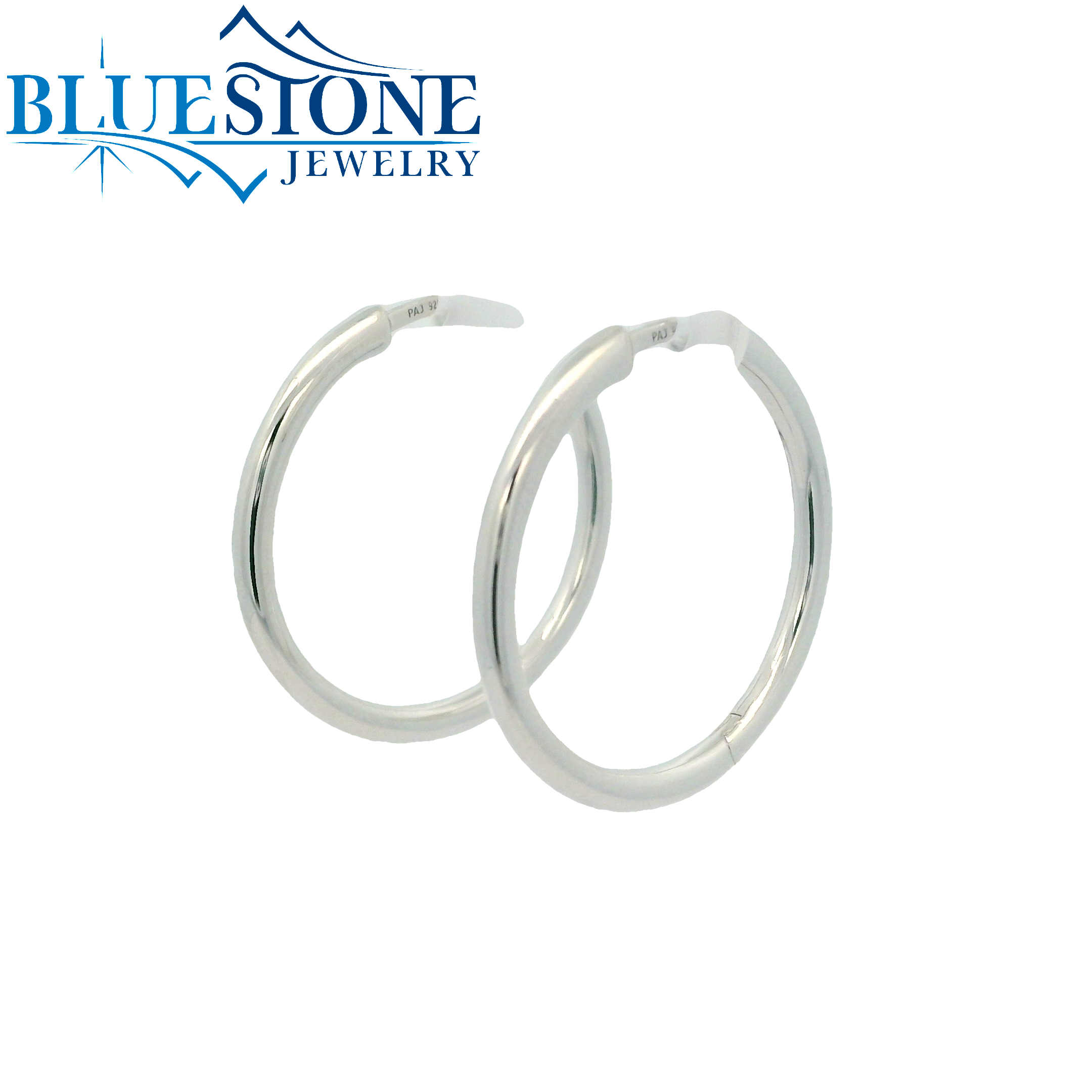 Sterling Silver with Rhodium Plated 2mm Hoops.Hoops Measure 1" Long.