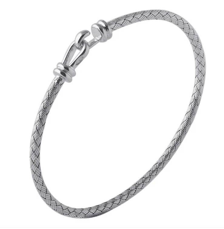 Sterling Silver Rhodium Plated 3mm Braided Rope Bracelet With Hook Clasp In Center. Bracelet Length is 7"
