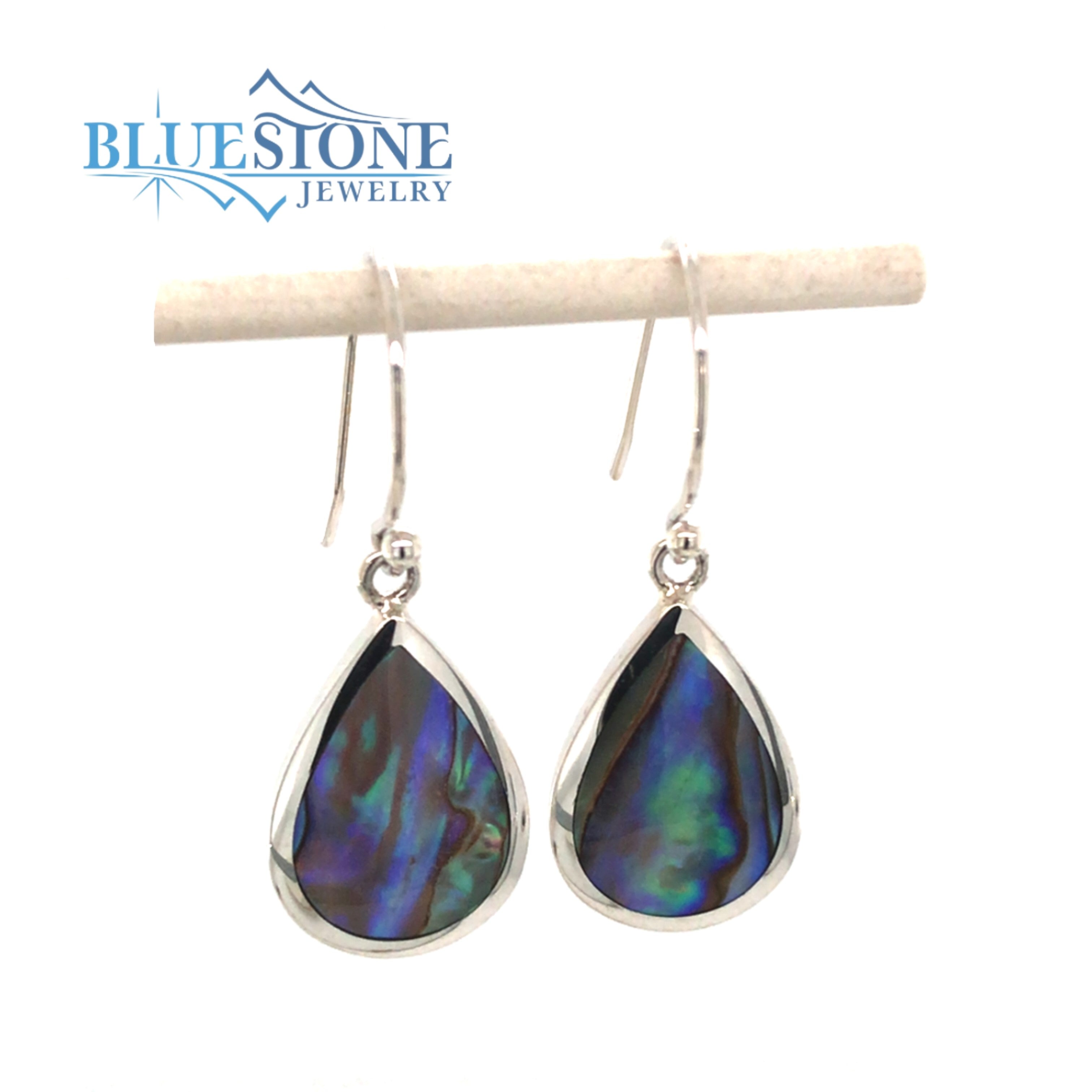Sterling Silver Rhodium Plated Wire Earrings with Two Teardrop Shaped Abalone Shells. Measure Approximately 1.25 Inches Long.