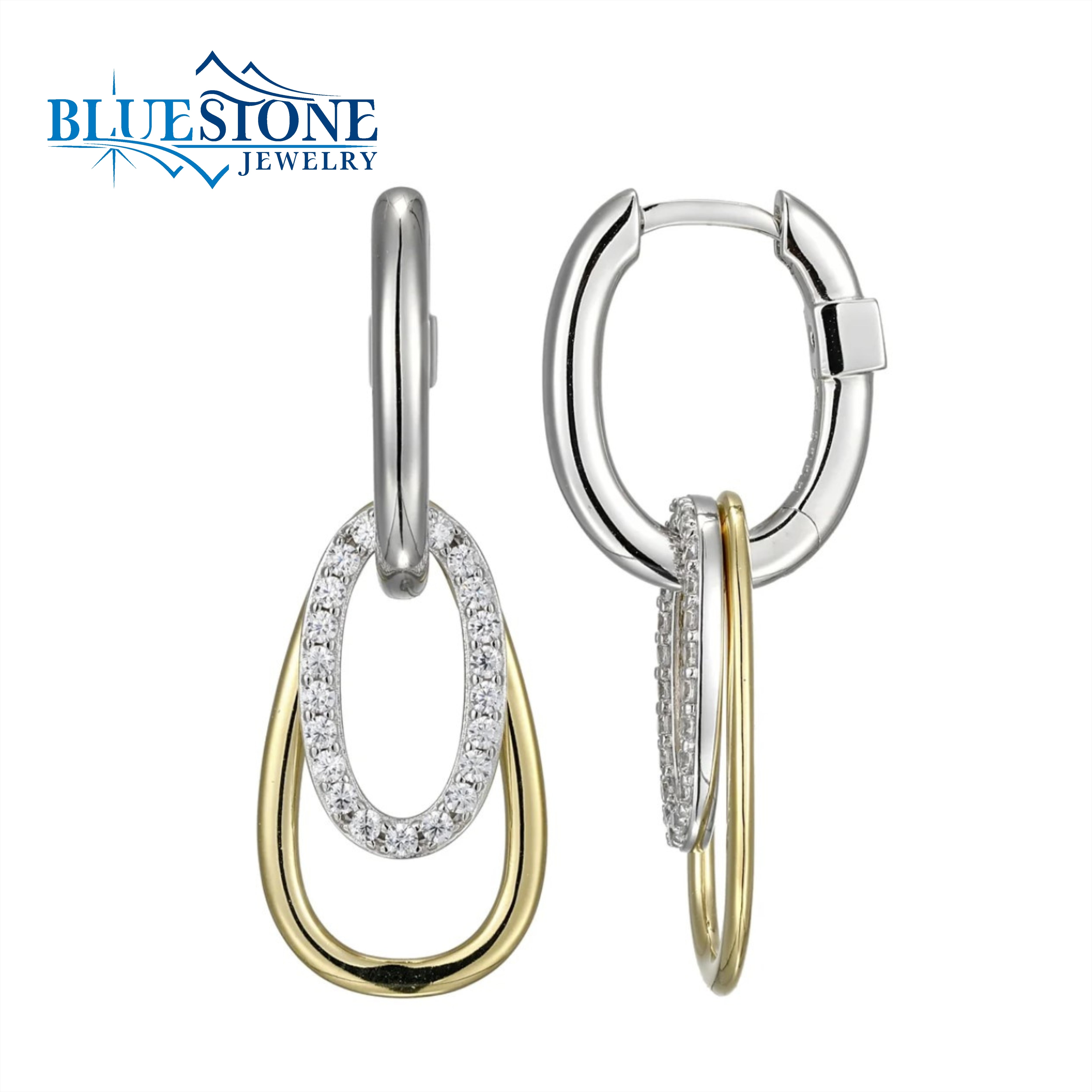 Sterling Silver and 14 Karat Yellow Gold Plated Earrings with CZ's