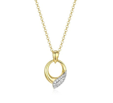 Sterling Silver and 14 Karat Yellow Gold Plated Necklace with Cubic Zirconia Gemstone Detail on Pendant. Necklace Measures 17" Long With an Additional 3" Extender.Necklace Has One Hidden Round Created Ruby Which Represents Inner Beauty, Inner Peace & Inner Strength.