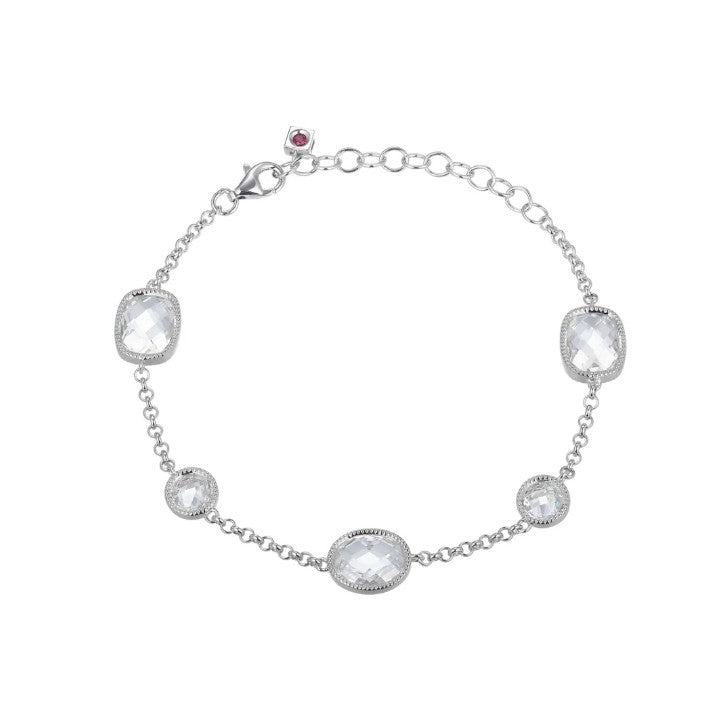 Sterling Silver and Rhodium Plated Bracelet with Five Cubic Zirconia Details - 8"