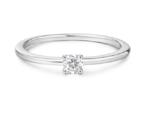 Sterling Silver and Rhodium Plated Simple Solitaire Cubic Zirconia Ring. Size 8.25Band Measures 1.1mm, Gemstone Measures 3.5mm
