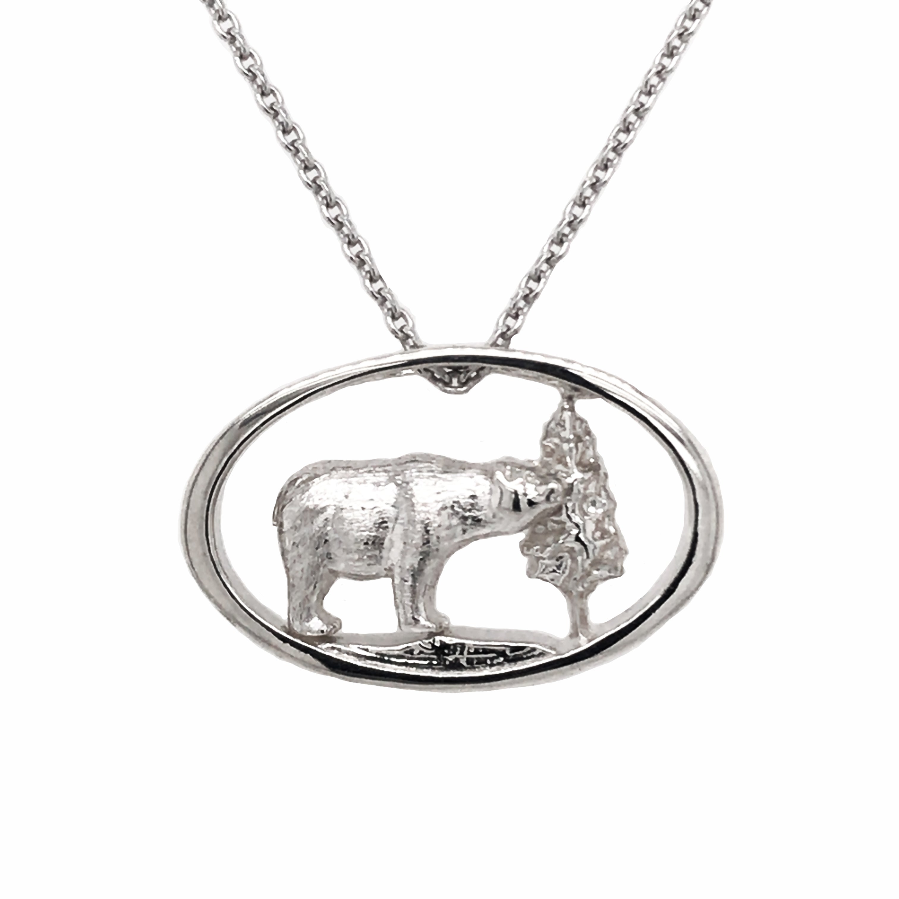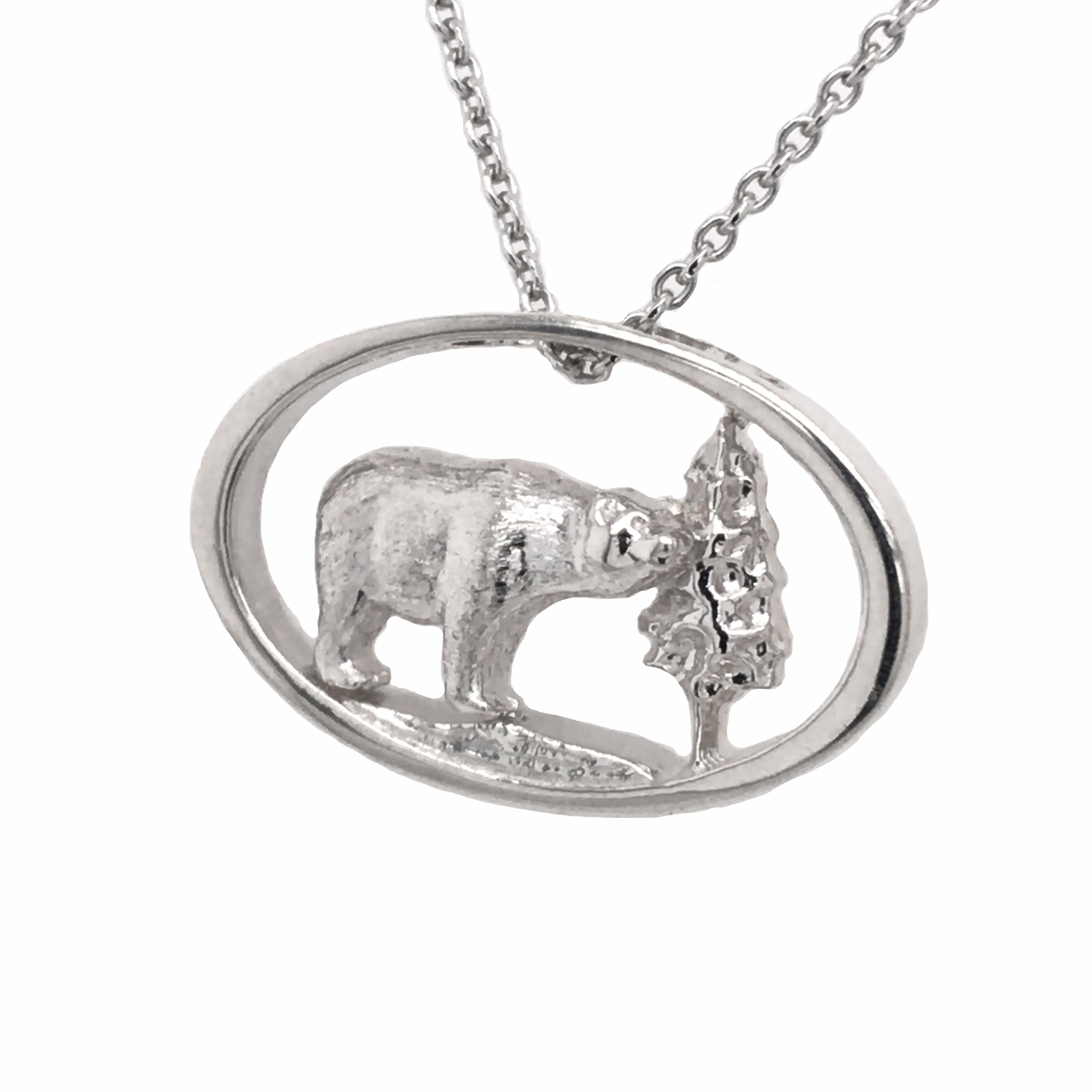 Sterling Silver Bear and Tree Pendant on an 18" Rolo Chain.