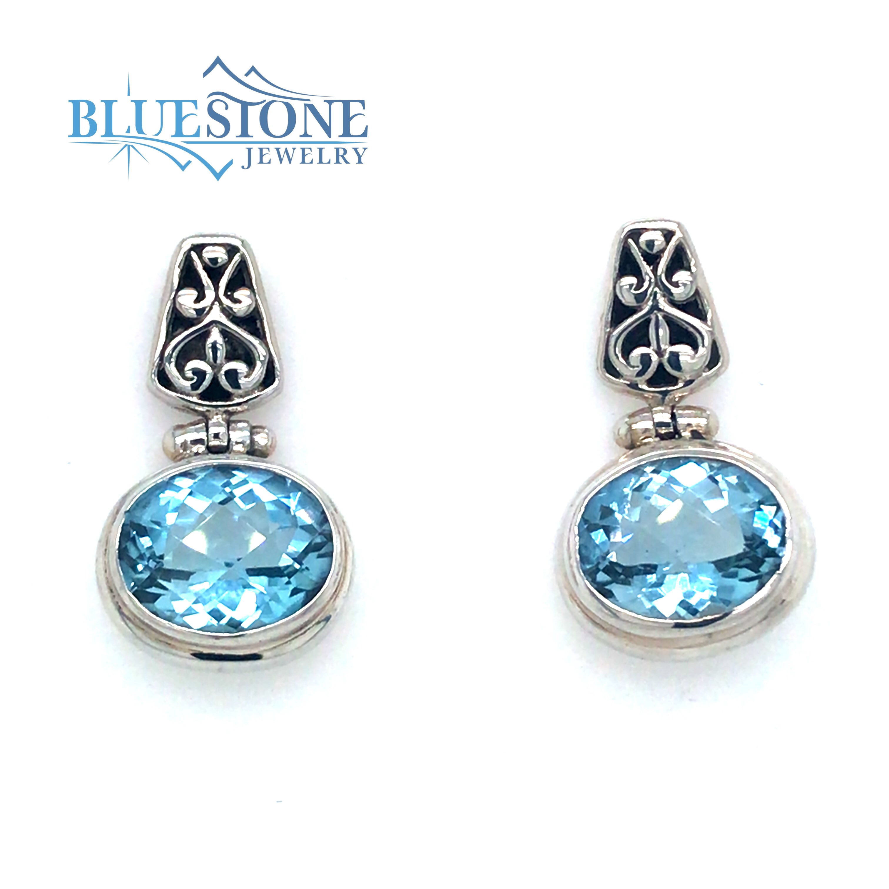 Sterling Silver Post Drop Earrings with Two Oval Blue Topazes. Earrings Measure Approximately 1" x 0.5".Local Lake Tahoe Designer