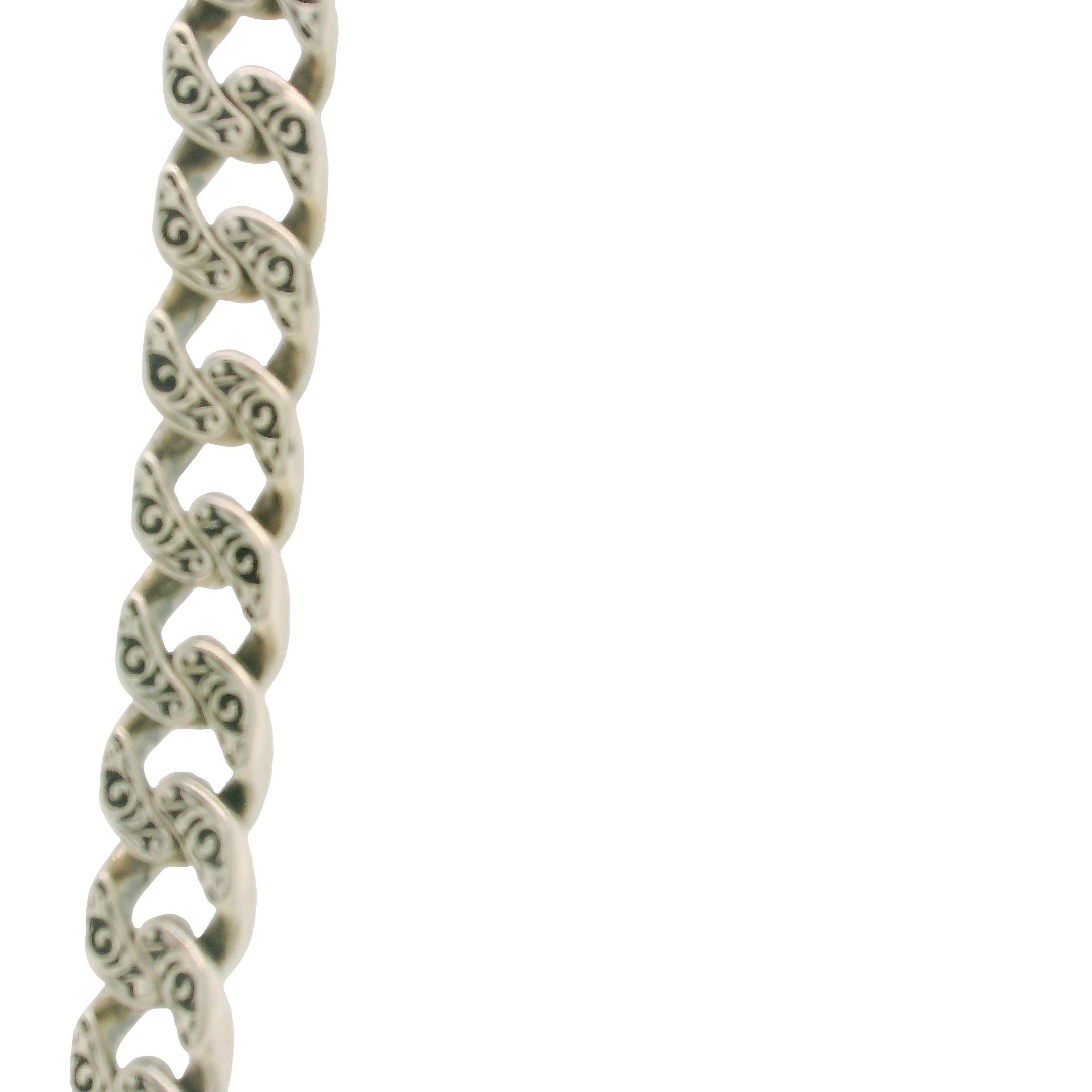 Sterling Silver Curb Chain Necklace with Scroll Pattern- 22 Inches