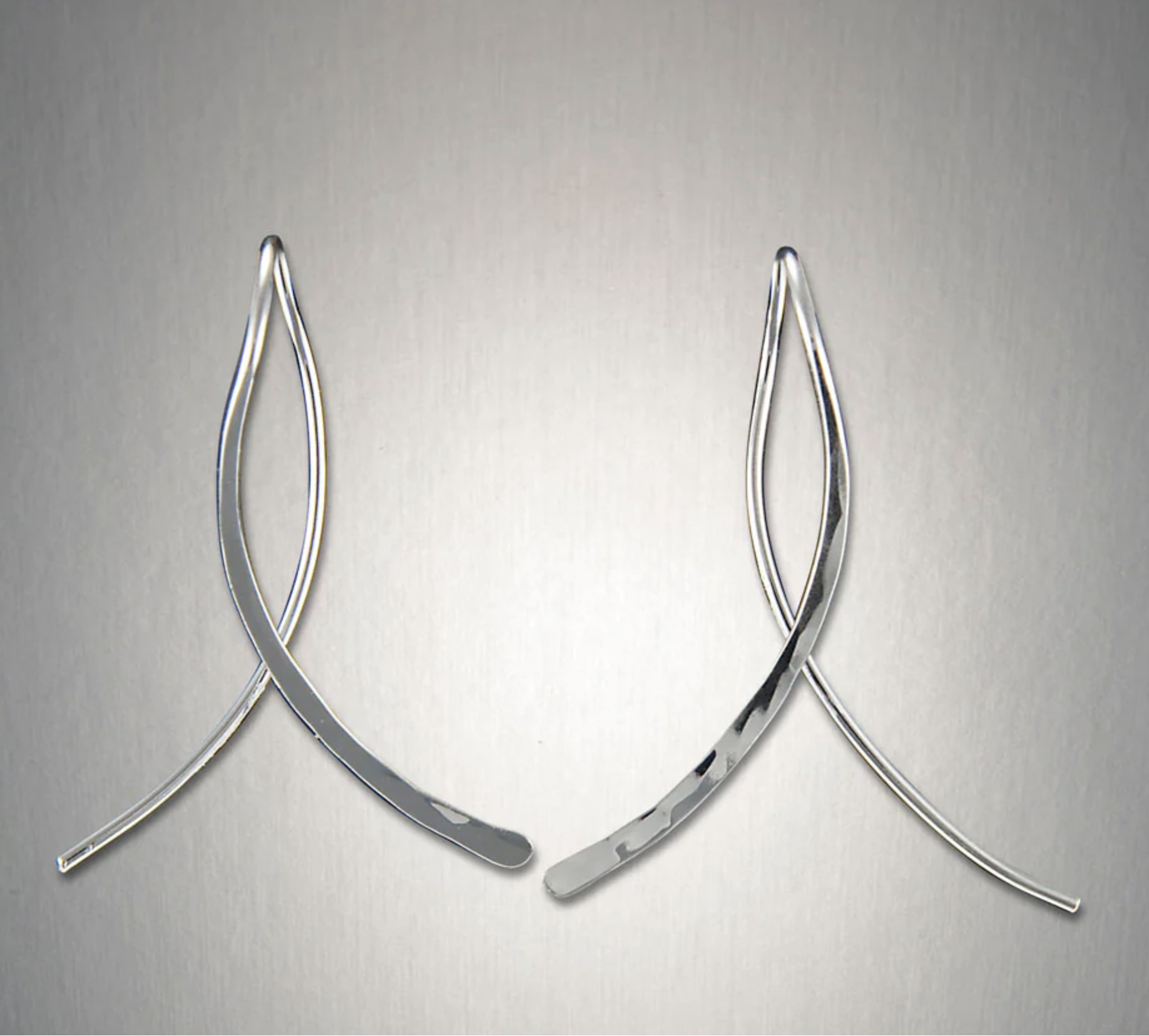 Sterling Silver Earrings. Hand hammered into the shape resembling a cursive L or the towers of the Golden Gate Bridge.