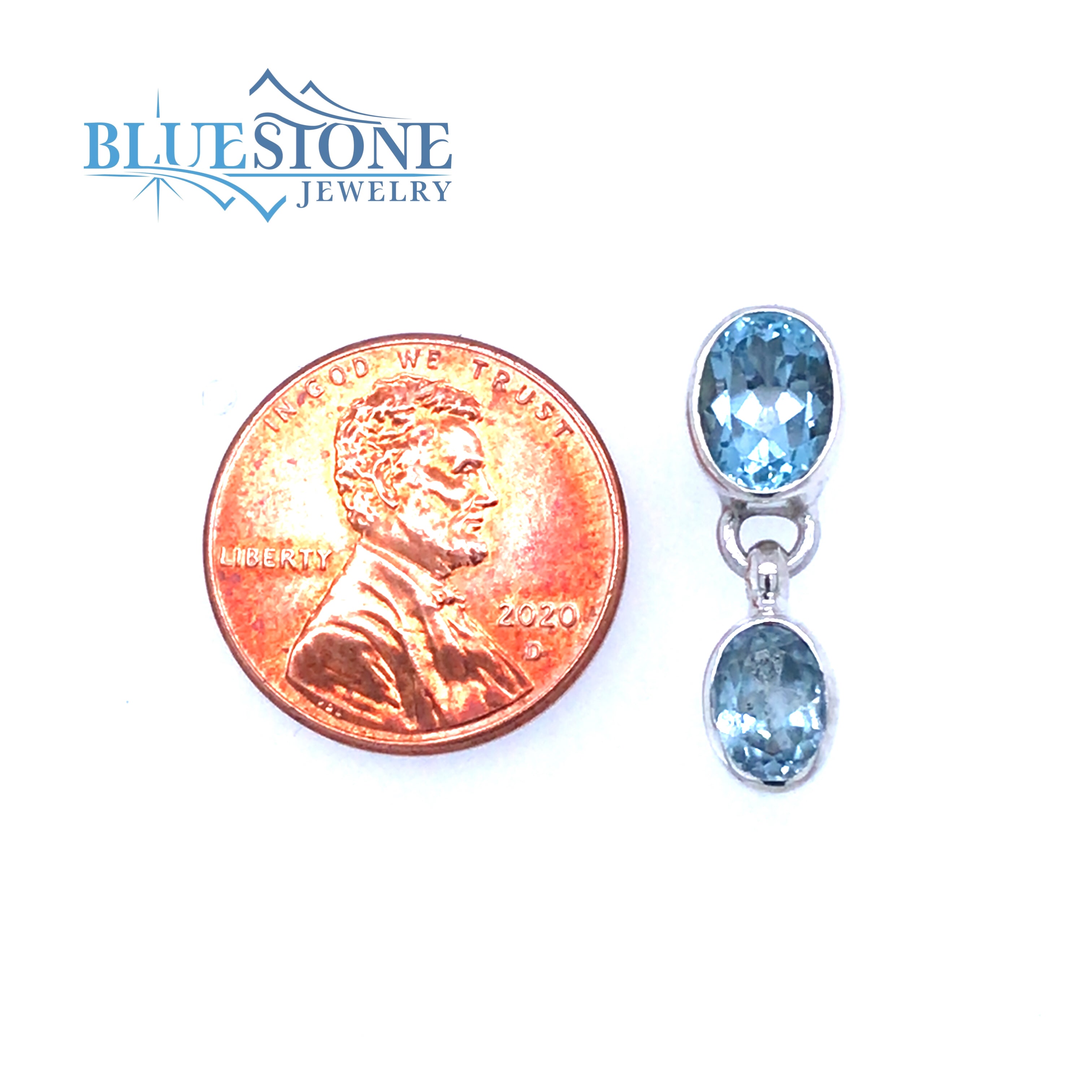 Sterling Silver Rhodium Plated Stud Drop Earrings with Four Oval Cut Blue Topazes. Measure Approximately 3/4 Inch Long.