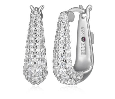 Sterling Silver and Rhodium Plated Hoop Earrings Encrusted with Various Cubic Zirconia Gemstones and Two Hidden Round Created Ruby Which Represents Inner Beauty, Inner Peace & Inner Strength. Earrings Measure 1.57" Long and 5.8mm Width.