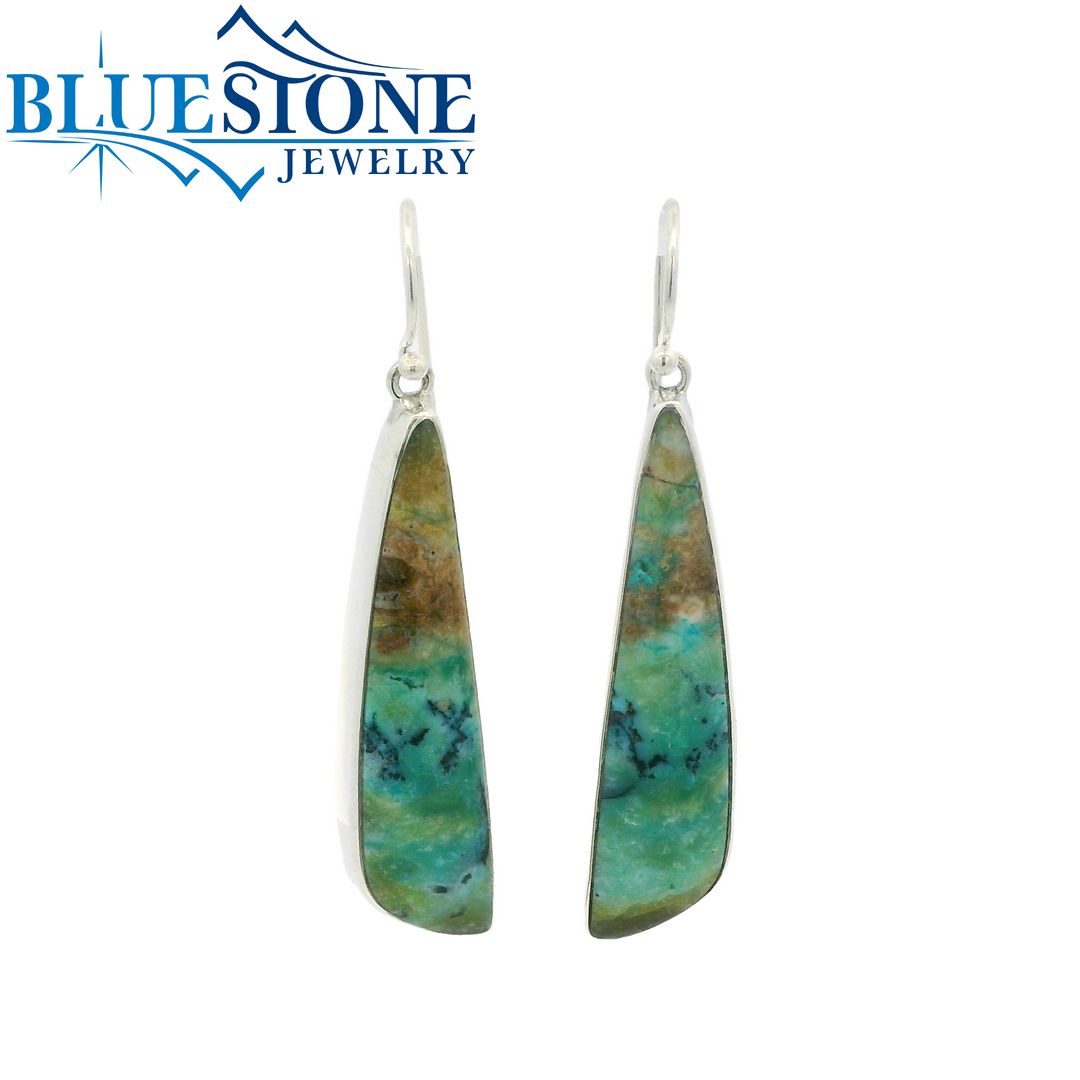 Sterling Silver Rhodium Plated French Wire Earrings with Two Tapered Cut Petrified Wood Agate Gemstones.Earrings Measures Approximately 2 inches x 0.75 inch. Total Earring Weight is 10.9 grams.