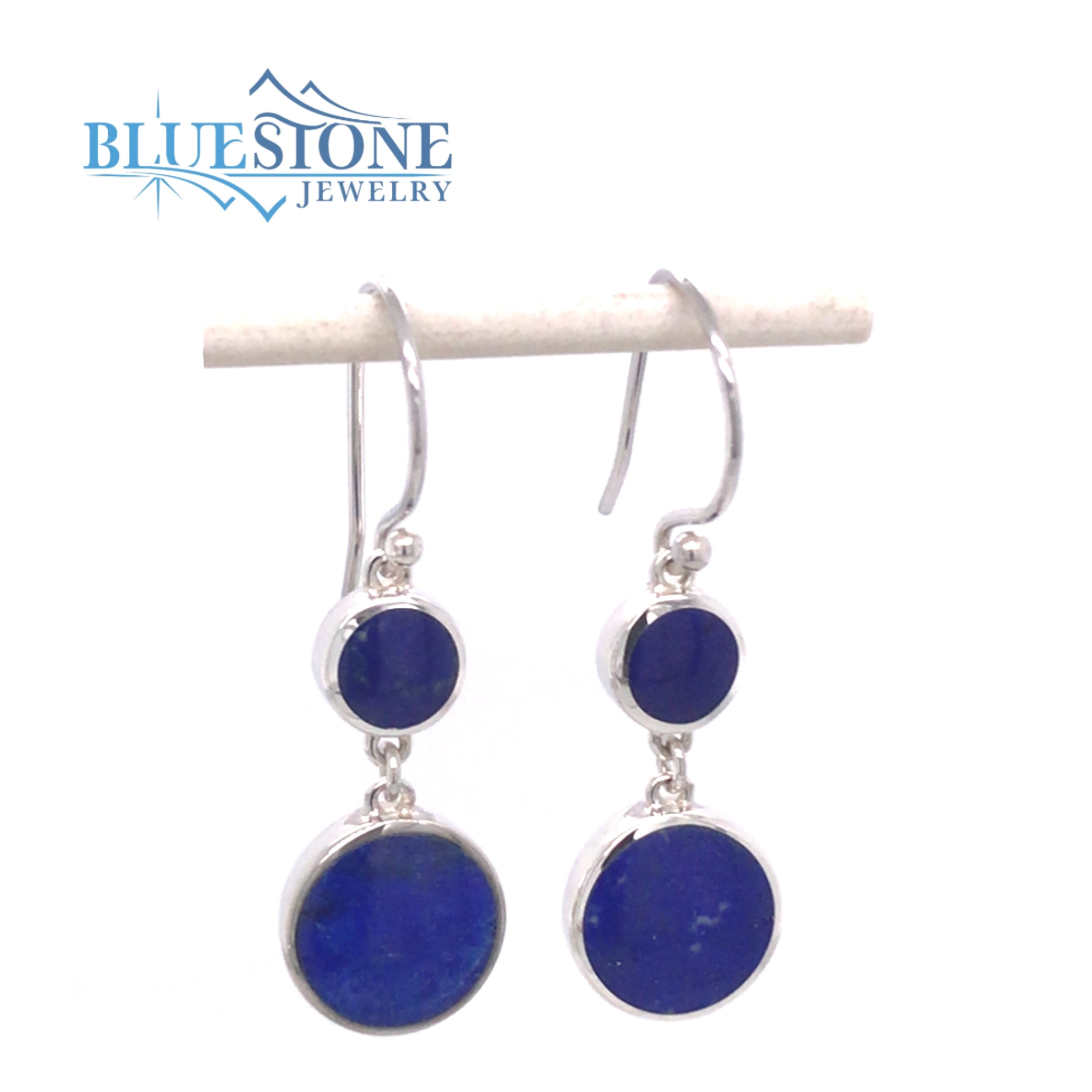 Sterling Silver Rhodium Plated Wire Earrings with 8 Round Natural Lapis Lazuli (front and back). Measure Approximately 1.5 Inch Long.