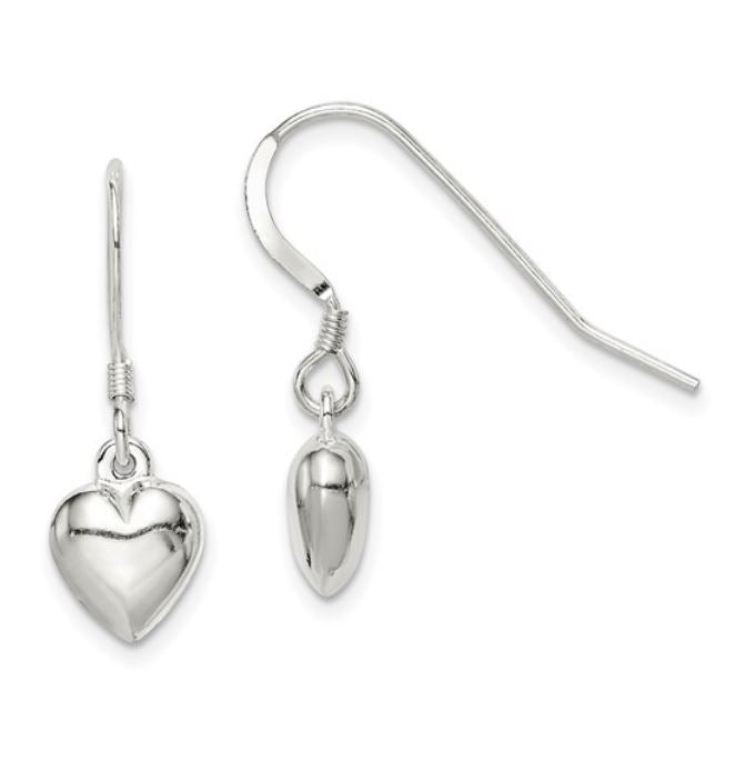 Sterling Silver Heart Earrings. Measure Approximately 24mm x 9mm.