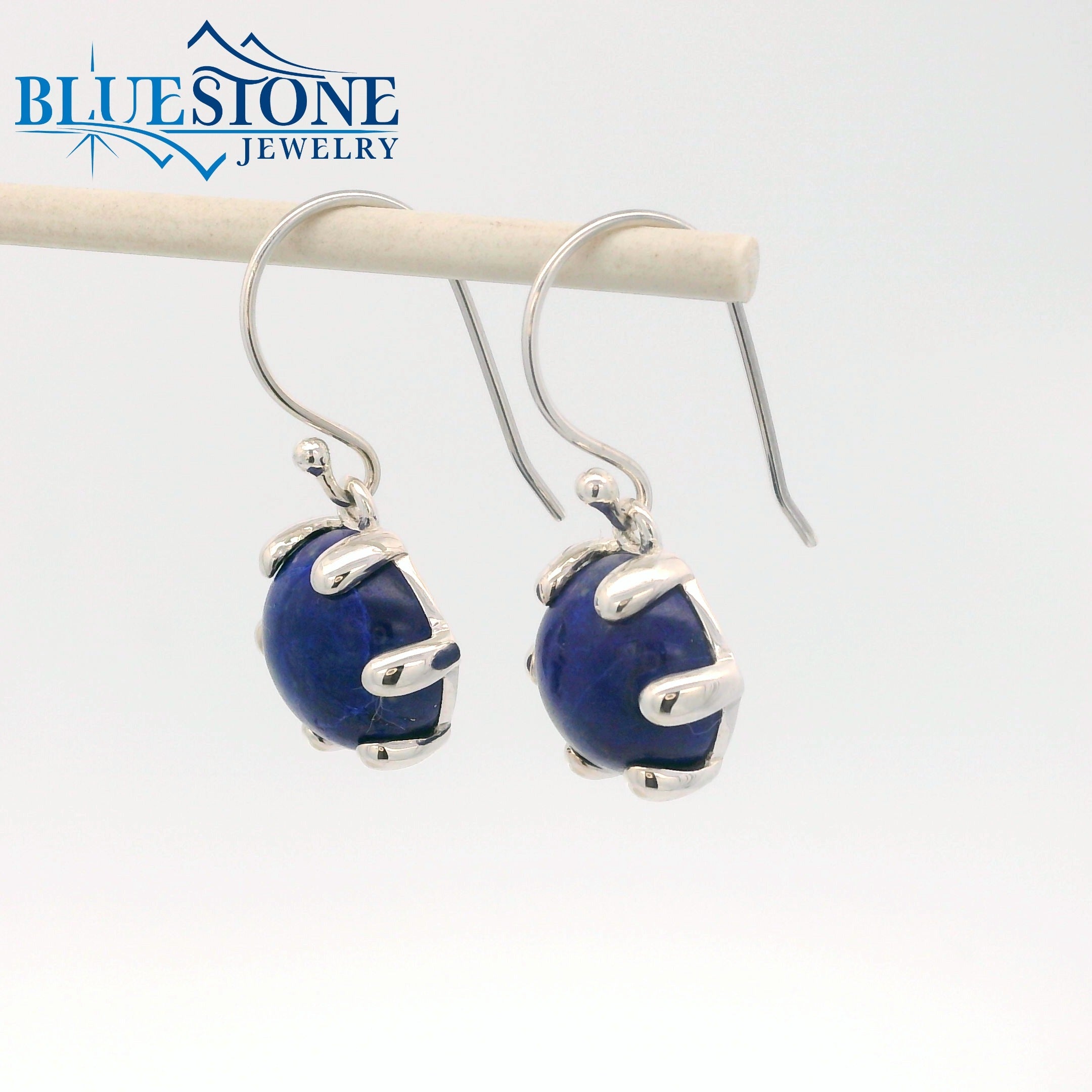 Sterling Silver and Rhodium Plated French Wire Earrings with Two 11.6mm Round Natural Lapis Lazuli Gemstones Both Set with 6 Thick Prongs.Earrings Measures 1.18 Inches Long by .5 Inch Wide.