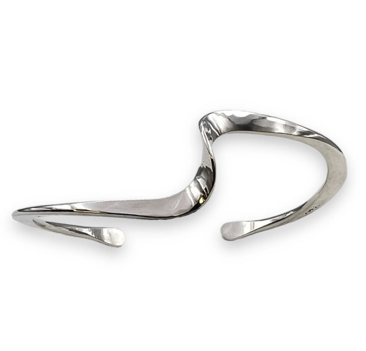 Sterling Silver Lightweight Simple Wave Cuff.Measures approximately 2 1/2 Inches Wide.Capable of Adjusting Slightly.