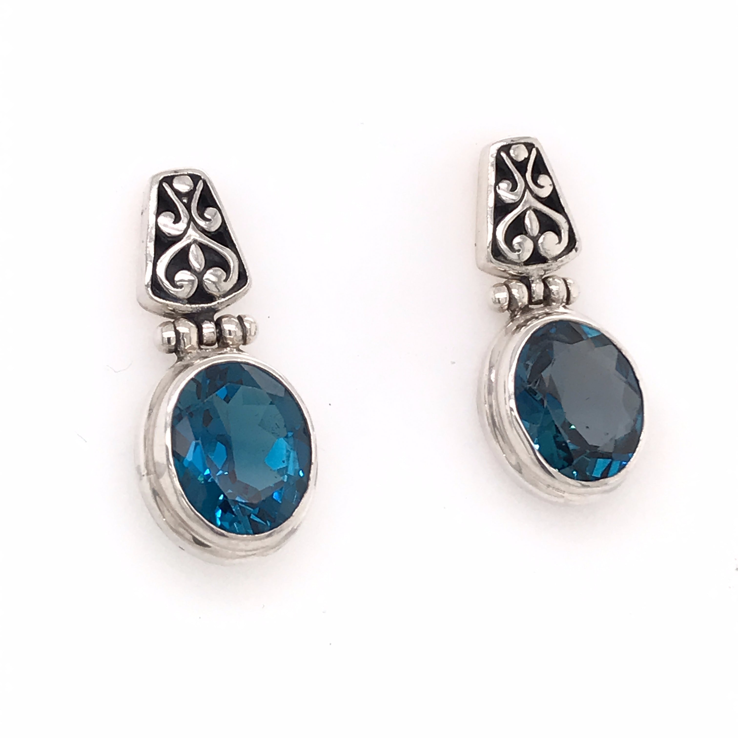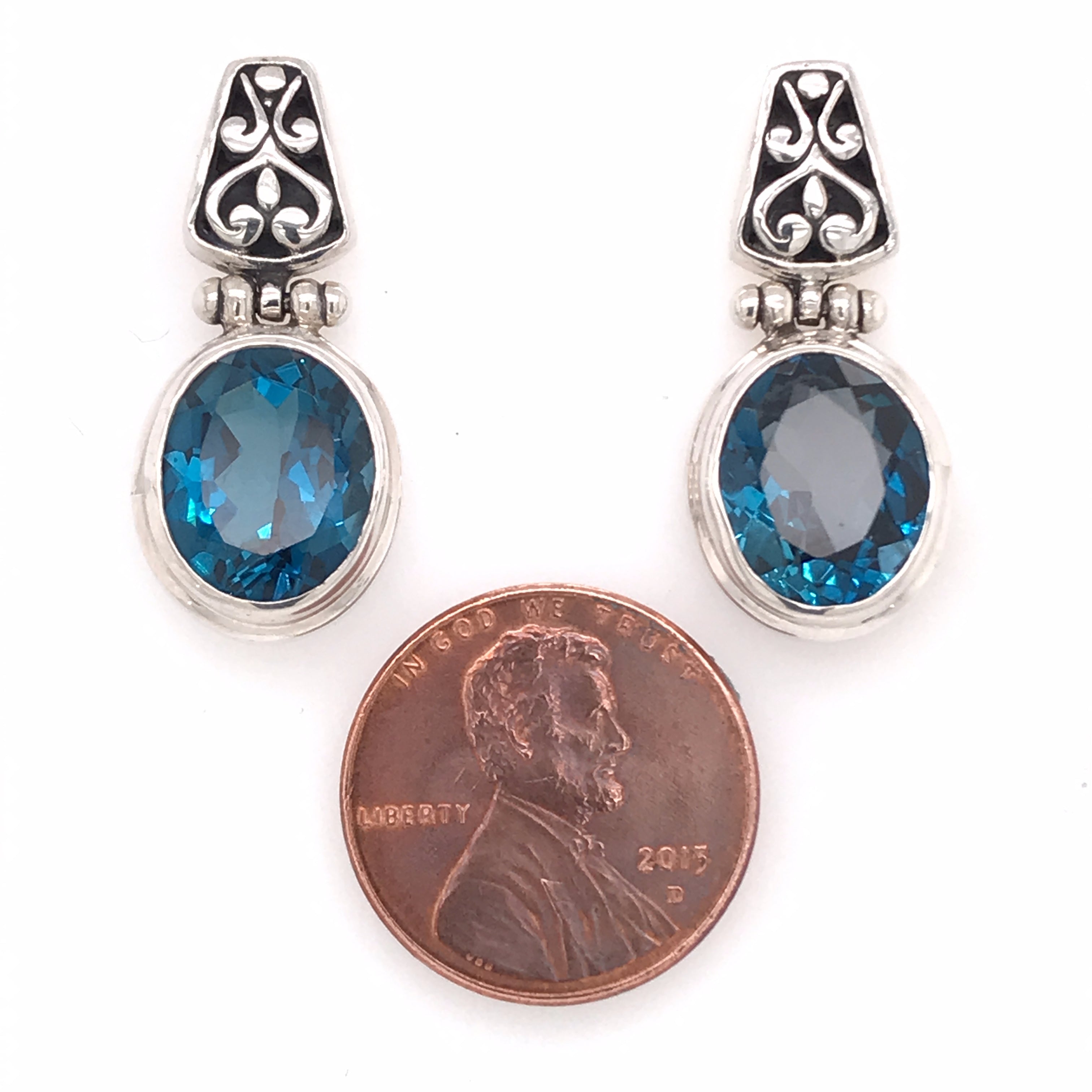 Large Sterling Silver Post Drop Earrings with Two Oval London Blue Topazes. Topazes Measure Approximately 9mm x 11mm.Local Lake Tahoe designer