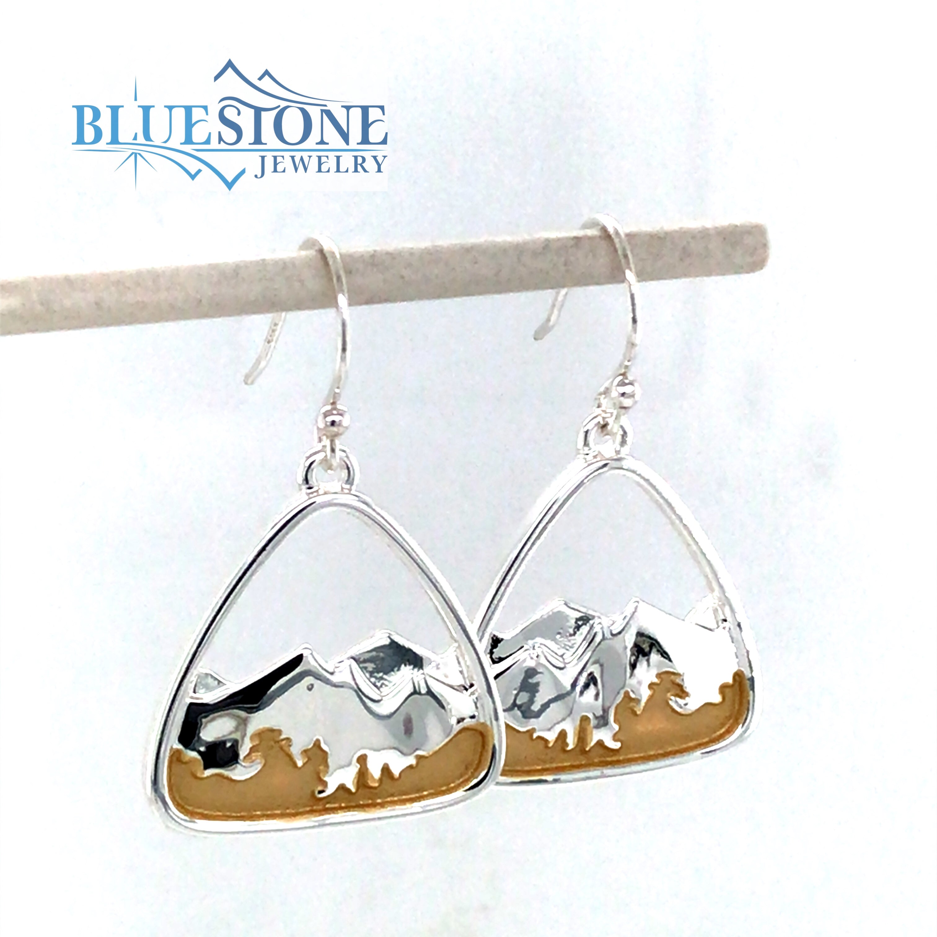 Sterling Silver Mountain Earrings with French Hooks. Feature Hand Laquered Gold Accents. Measure 3/4 Inch by 3/4 Inch.All sales benefit the Vietnam Relief Services charity, improving the qualityof schools in remote parts of Vietnam.