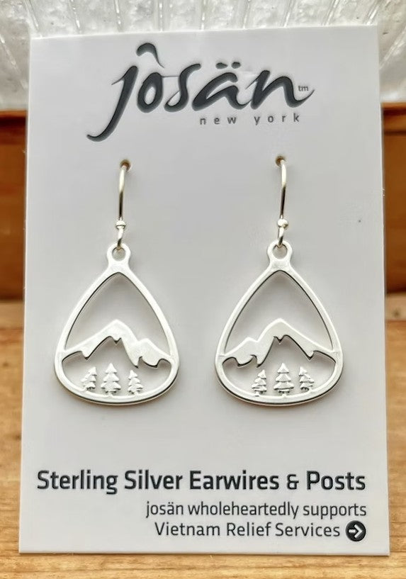 Sterling Silver Triangular Mountain and Smaller Tree Earrings with French Hooks. Earrings Measure Approximately 1.25 Inch by 0.75 Inch. Each purchase benefits the Vietnam Relief Services charity, improving the quality of schools in remote parts of Vietnam.