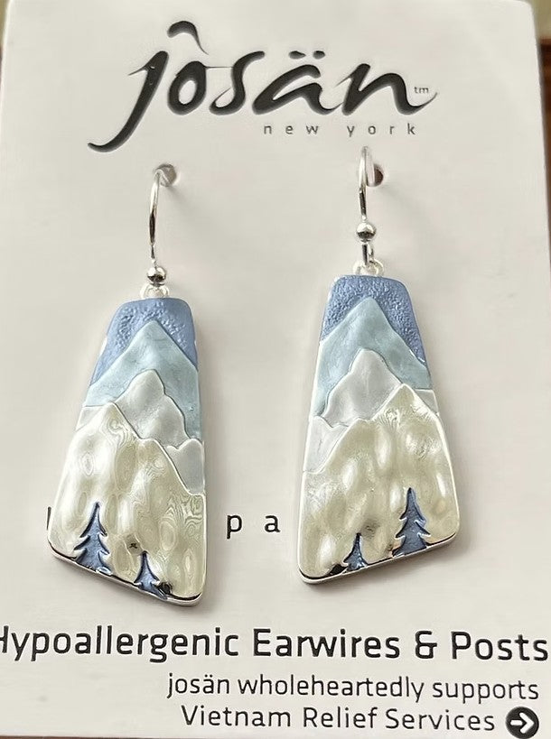 Sterling Silver and Rhodium Plated Earrings with French Hooks Featuring Matte Enamel Trees and Mountains. Earrings Measure Approximately 1.5 Inch by 0.5 Inch.Each purchase benefits the Vietnam Relief Services charity, improving the quality of schools in remote parts of Vietnam.