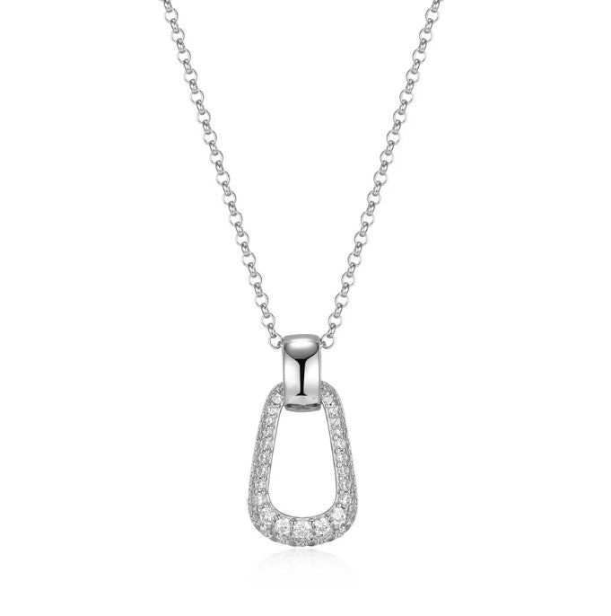 Sterling Silver Necklace with Cubic Zirconia Encrusted Pendant - 20"