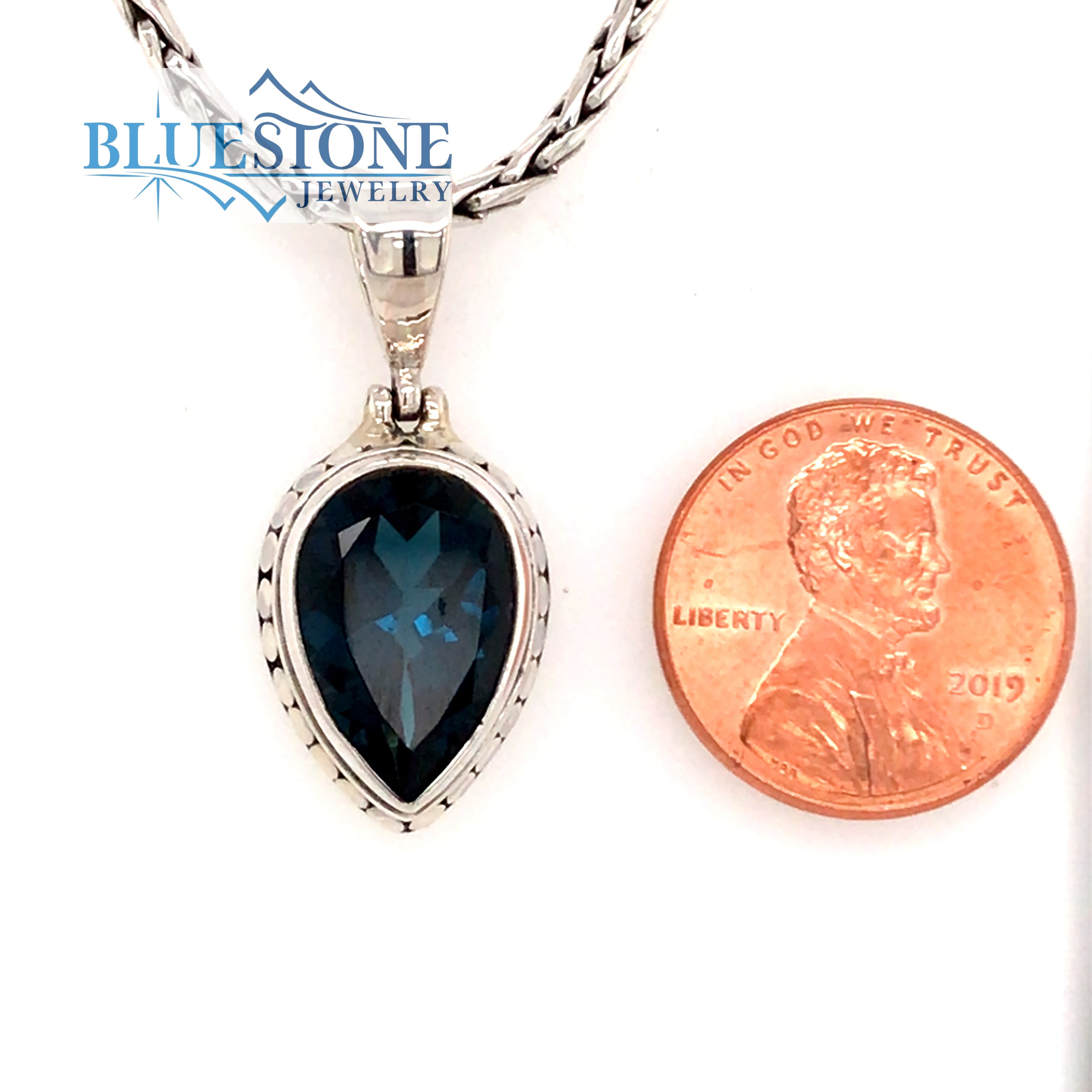 Sterling Silver Pendant with a Pear Cut London Blue Topaz Gemstone. Pe