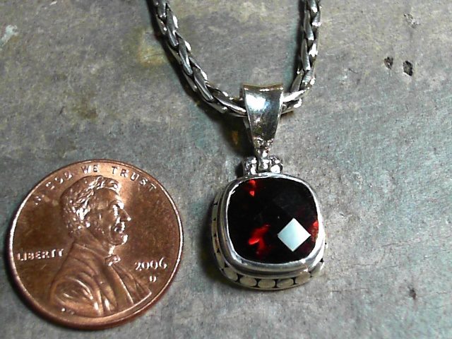 Sterling Silver Pendant with One Cushion Cut Garnet on a Handwoven Sterling Silver Chain, 18 Inches in Length....Local Lake Tahoe designer