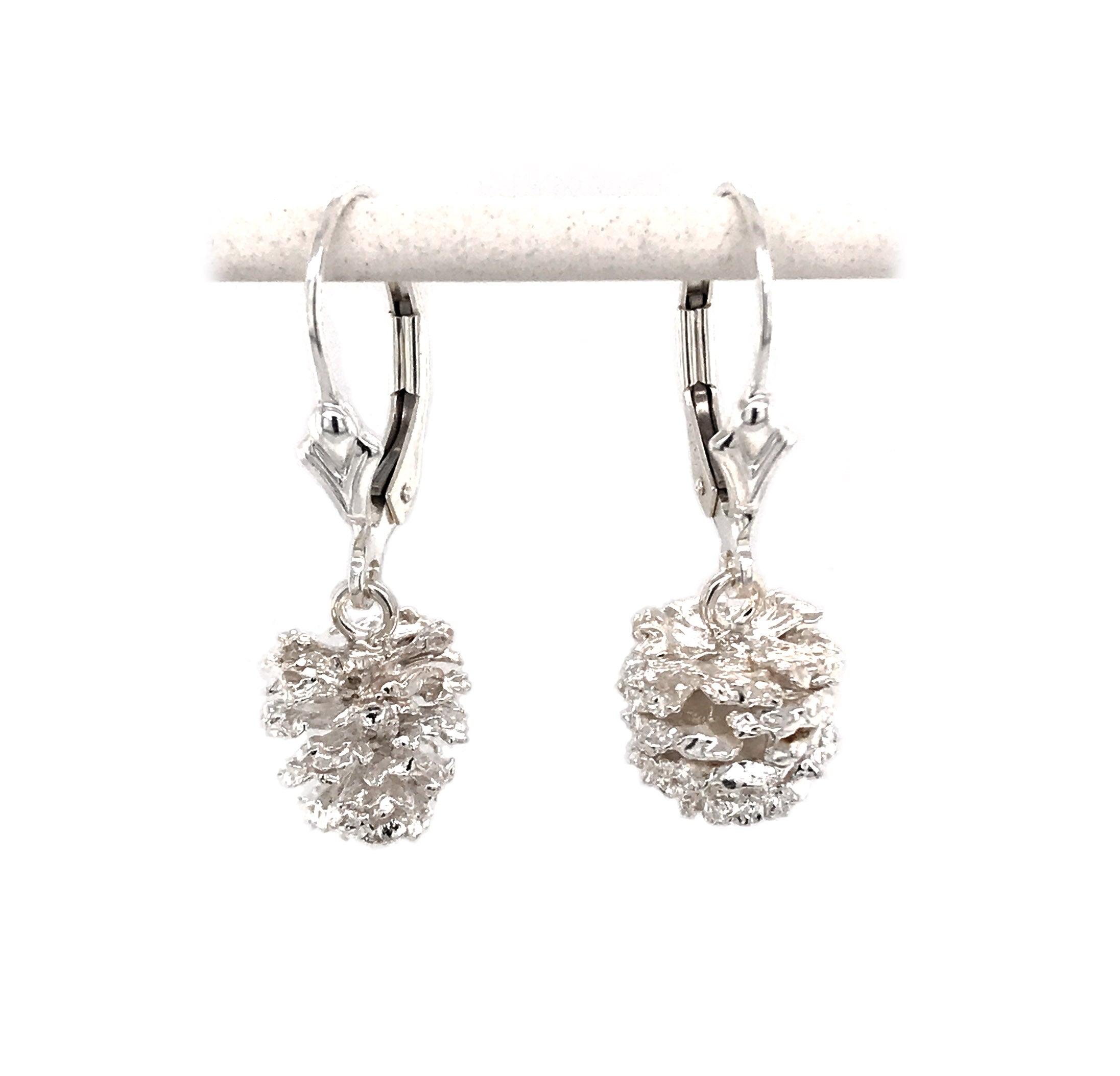 Sterling Silver Pine Cone Lever Back Earrings. Made from lost wax castings of the Alder Pine pine cones that grown along the Truckee River here in Tahoe. Each pine cone will vary in size and shape.