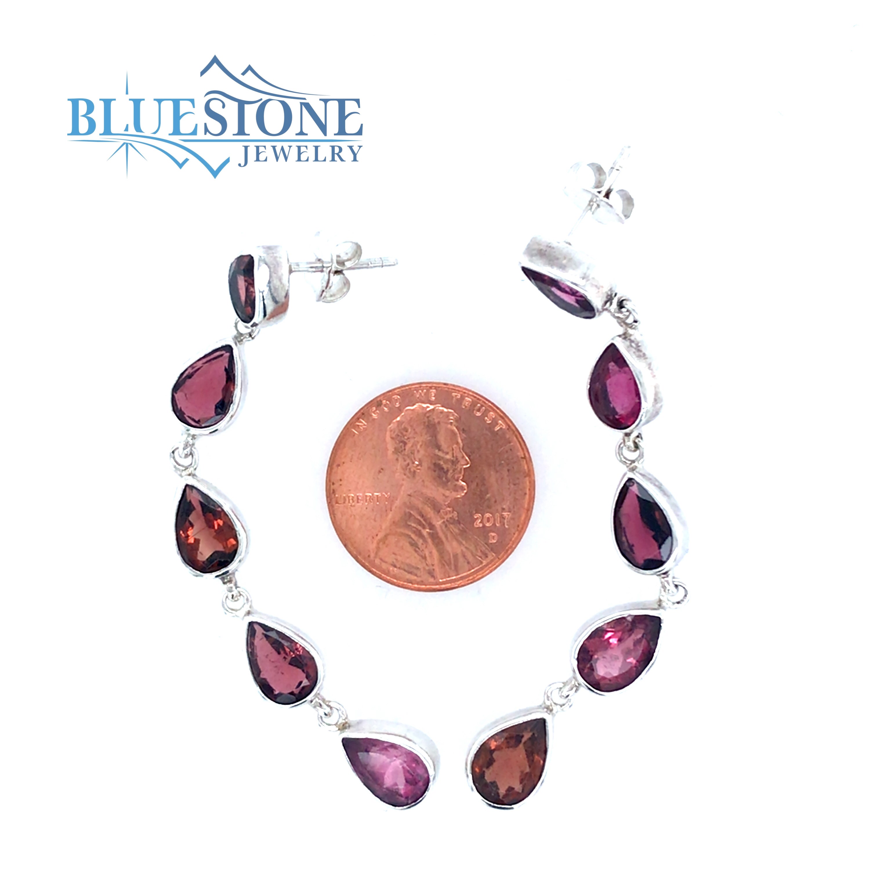 Sterling Silver Stud Drop Earrings with Ten 6mm x 8mm Pear Cut Pink Tourmaline Gemstones. Measure Approximately 2.5 Inches Long.Local Lake Tahoe Designer.