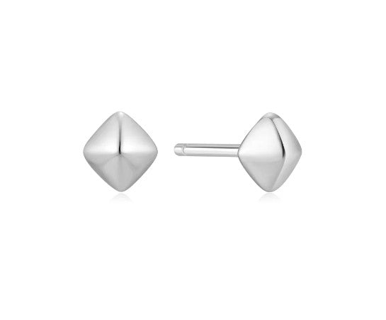 Sterling Silver and Rhodium Plated Pyramid Stud Earrings. Stud Earrings Measure 4mm x 4mm.