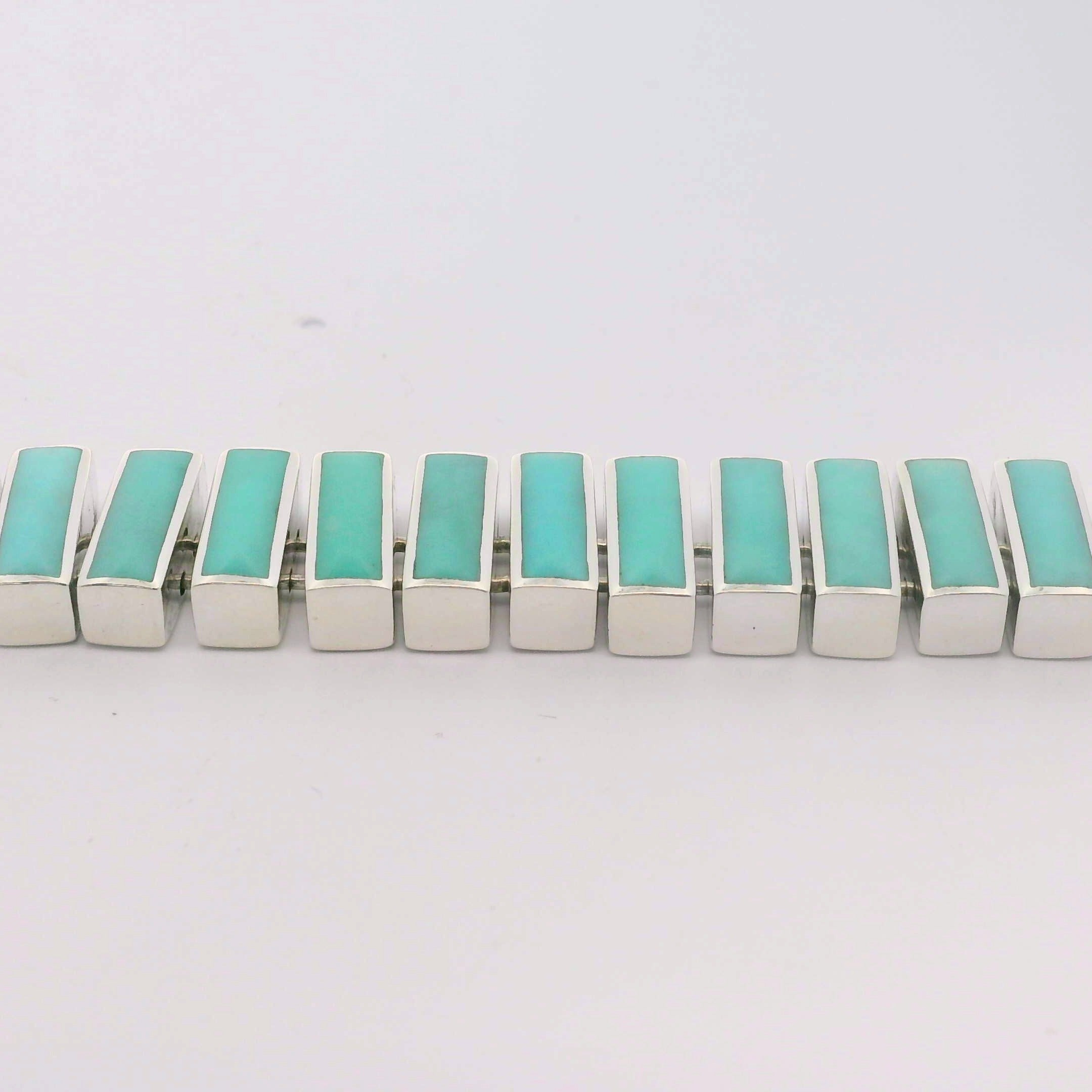 Sterling Silver Rectangle Turquoise Link Bracelet- 8 Inches