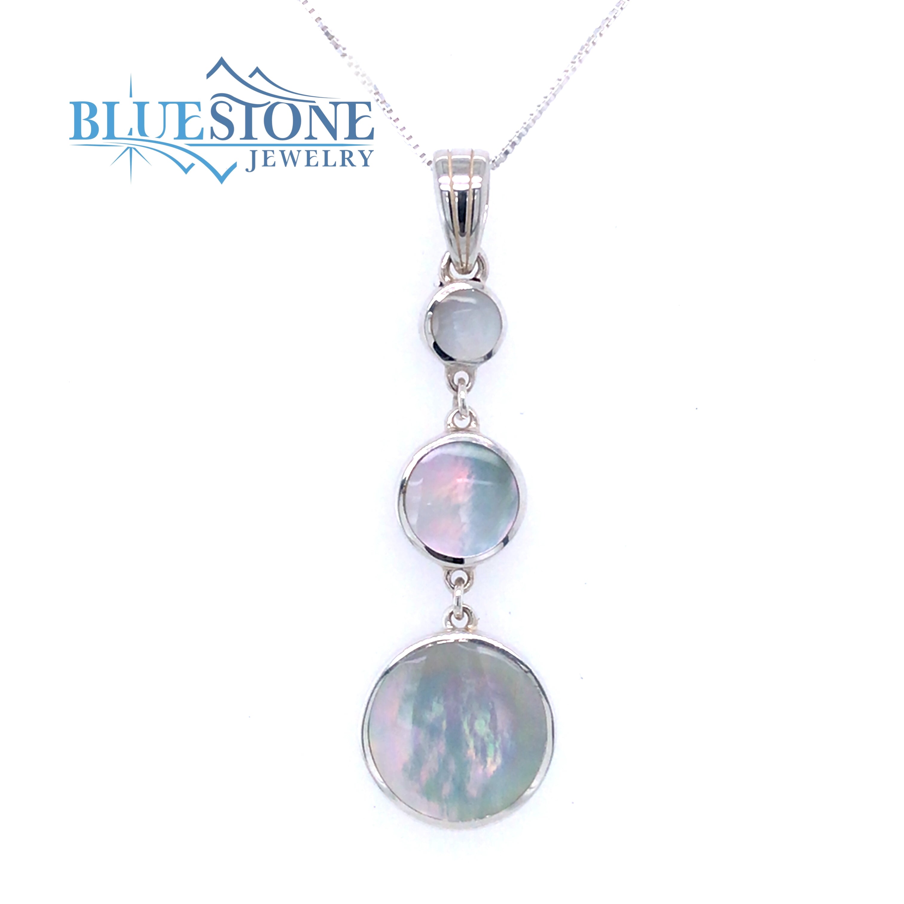 Sterling Silver Reversible Pendant w/ Black & White Mother of Pearl -18"
