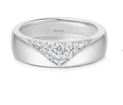 Sterling Silver and Rhodium Plated Bold Fashion Ring with 14 Round Geometric Shaped Cubic Zirconia Gemstones. Ring Size 7.75Ring Width Measures Approximately 6mm.