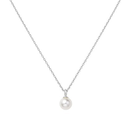 Sterling Silver & Rhodium Plated Necklace with One Drop Pearl Pendant. Necklace Measures 18 Inches Plus an Additional 2 Inch Extender, Totalling 20 Inches.Pearl Pendant Measures Approximately 6.7mm.