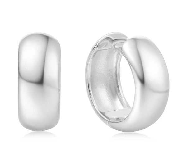 Sterling Silver & Rhodium Plated Medium Chubby Huggie Hoop Earrings