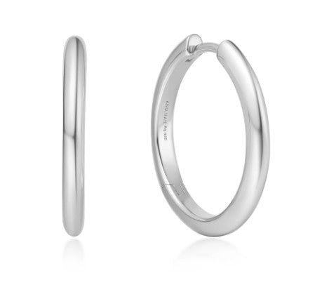 Sterling Silver & Rhodium Plated Medium Tube Huggie Hoop Earrings