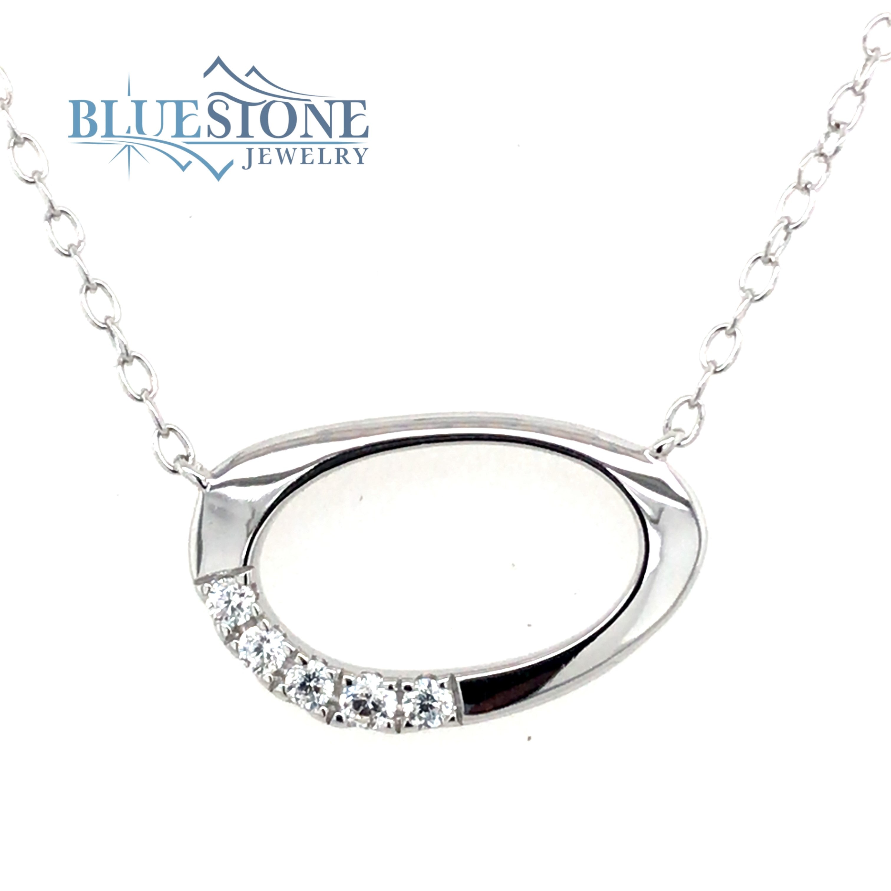 Sterling Silver Rhodium Plated Necklace with Cubic Zirconias and One R