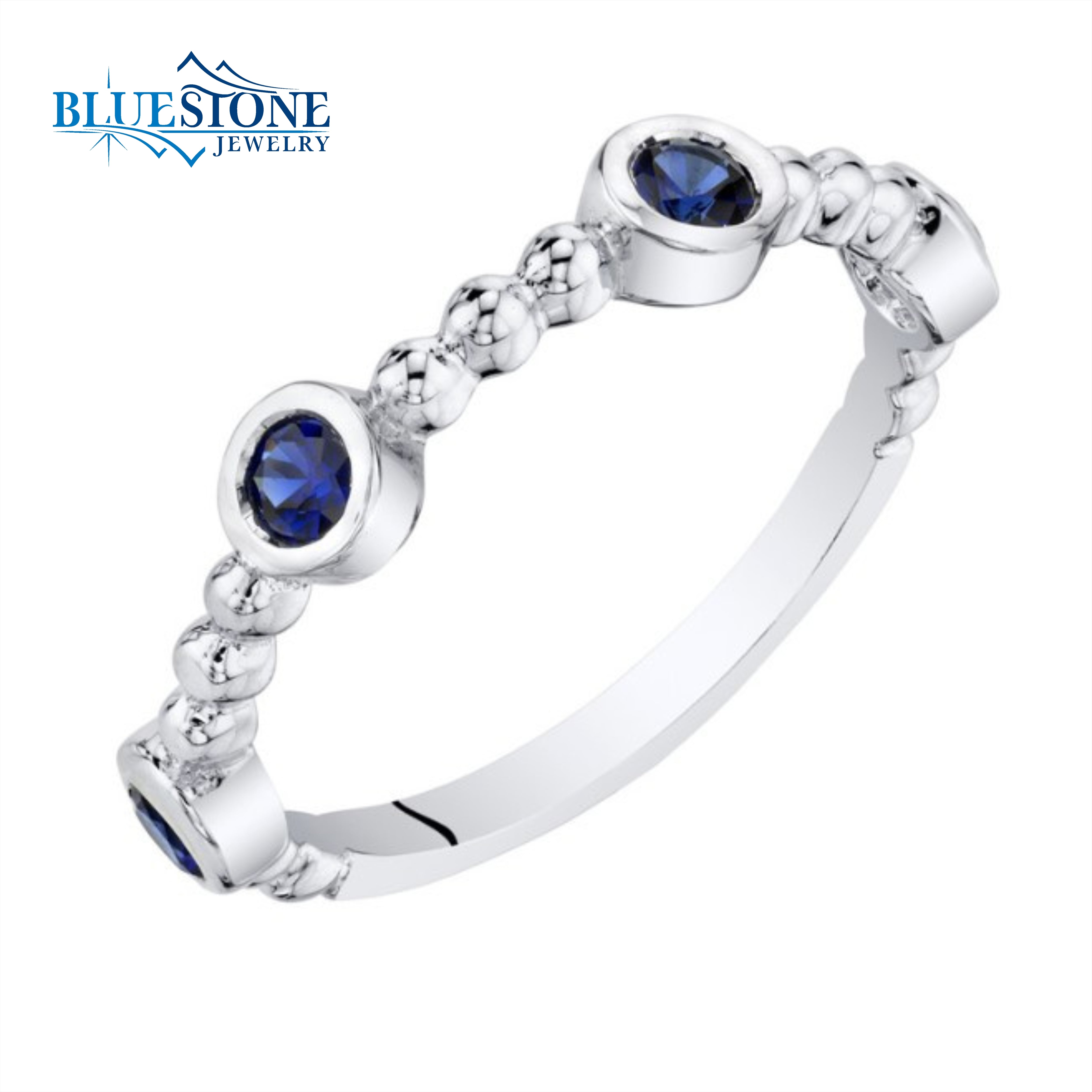 Sterling Silver Rhodium Plated Ring with Four 0.08 Carat 2.5mm Round Cut Created Sapphires. Ring Size 7.Other Ring Sizes are Available.