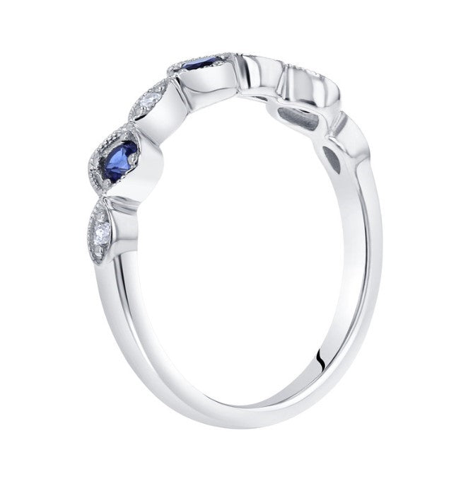 Sterling Silver Rhodium Plated Ring with Three 2.5mm Round Lab Created Sapphires at 0.24 Total Carat Weight and Cubic Zirconia Accents. Ring Size 6Can be ordered in other ring sizes. Please inquire.