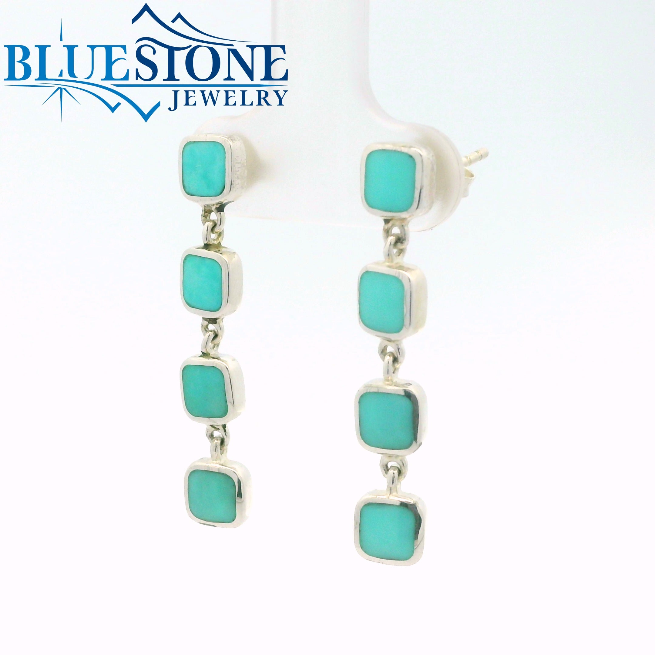Sterling Silver Square Cascading Turquoise Post Earrings