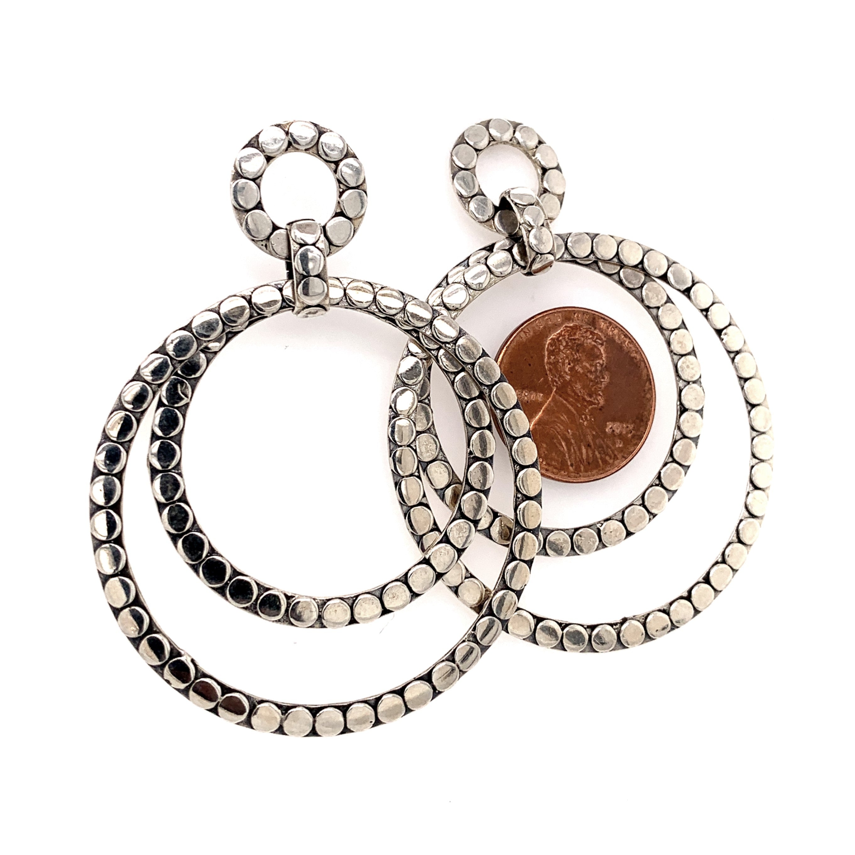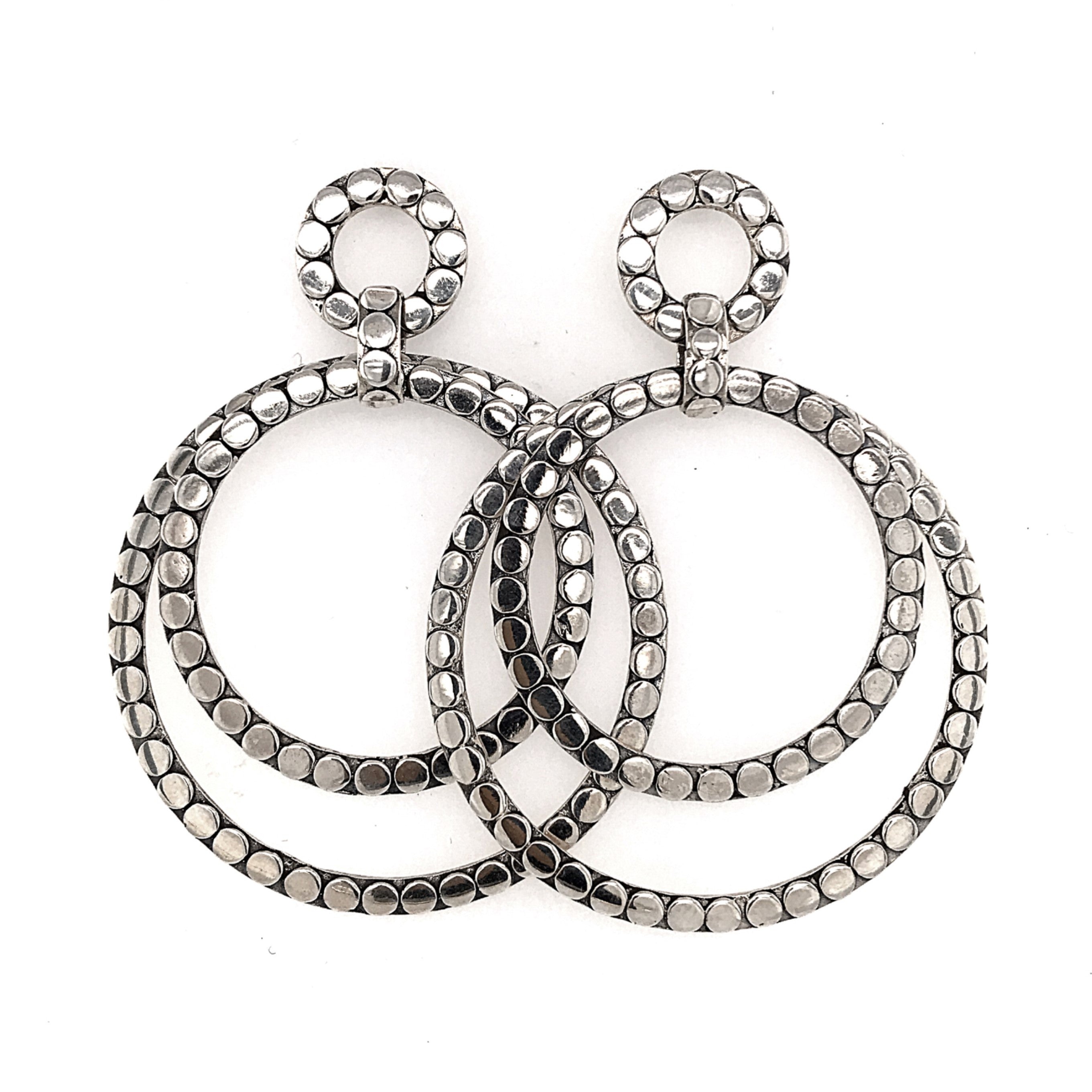 Medium Sterling Silver Stud Post Drop Double Hoop Earrings with Armadillo Dot Design Details. Measure Approximately 1.75" Long by 1.25" Wide.Local Lake Tahoe Designer.