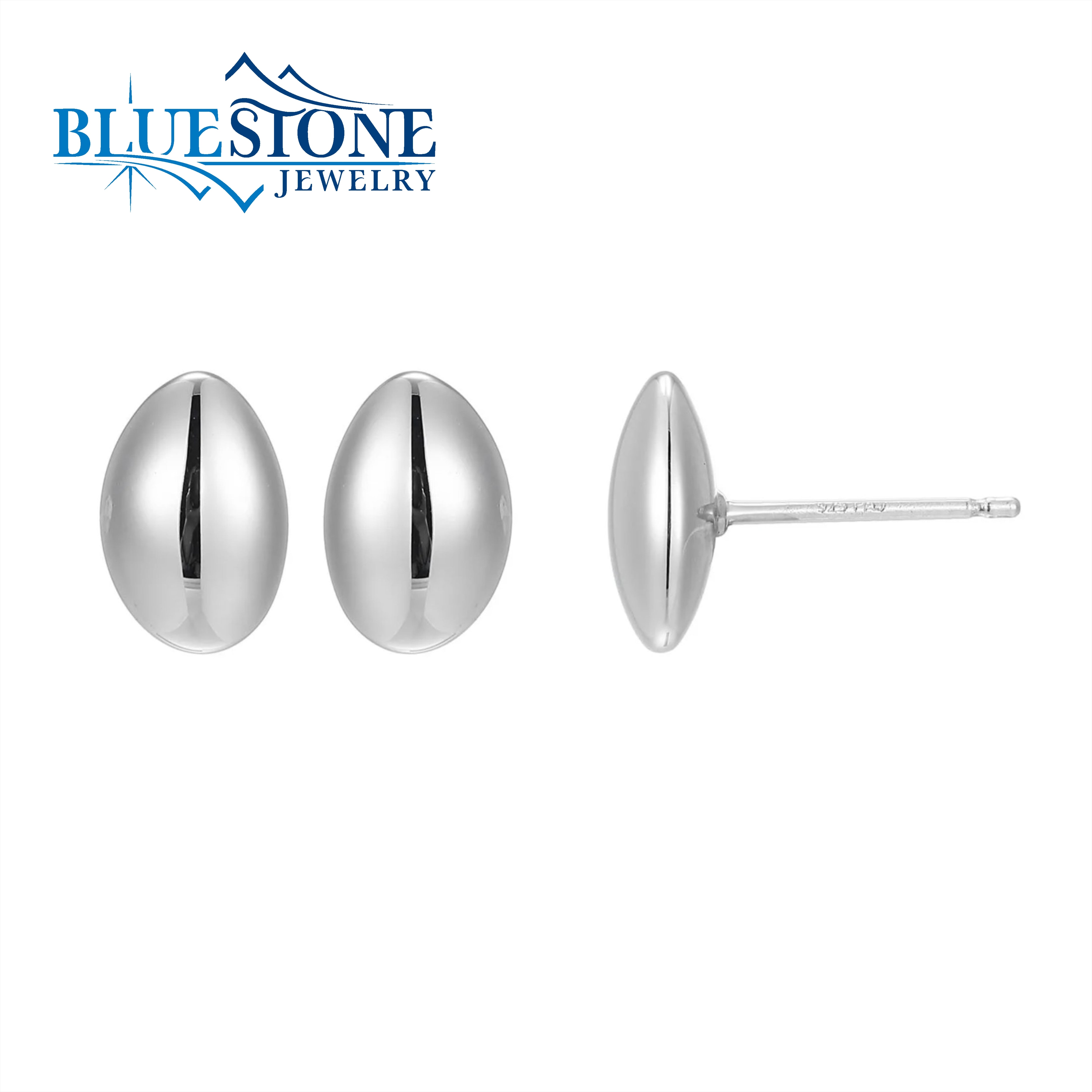 Sterling Silver Rhodium Plated Stud Earrings. Measure 1/4 Inches by 3/8 Inches.