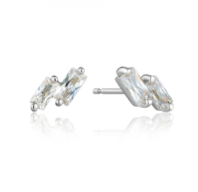 Sterling Silver with Rhodium Plating Glow Stud Earrings with 2 Baguette Cubic Zirconias each.