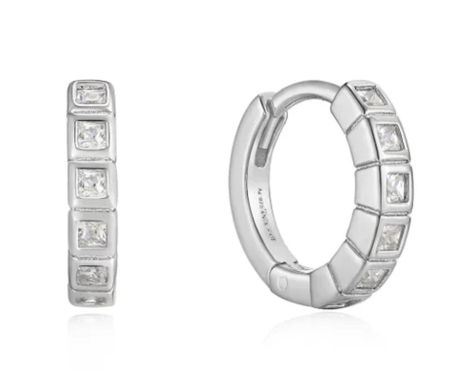 Sterling Silver with Rhodium Plating Stud Earrings with 12 Square Cubic Zirconias. Measure 1/2" Wide.