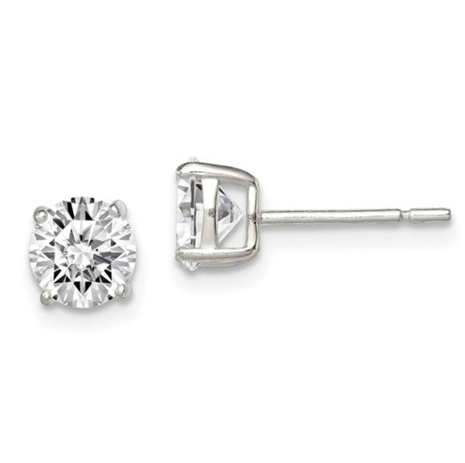 Sterling Silver Stud Earrings with 6mm Round Cubic Zirconias.